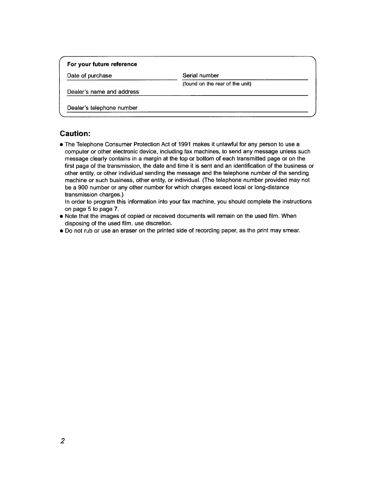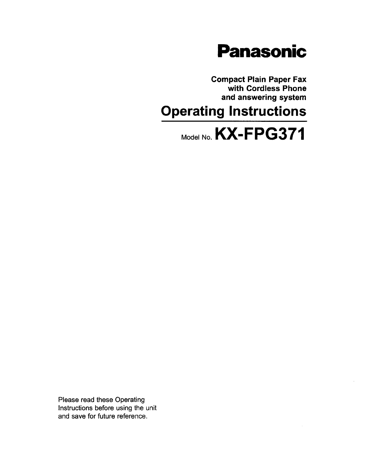 Panasonic of North America KM7KX-FPG371 Fax w/ Cordless Telephone Base User Manual