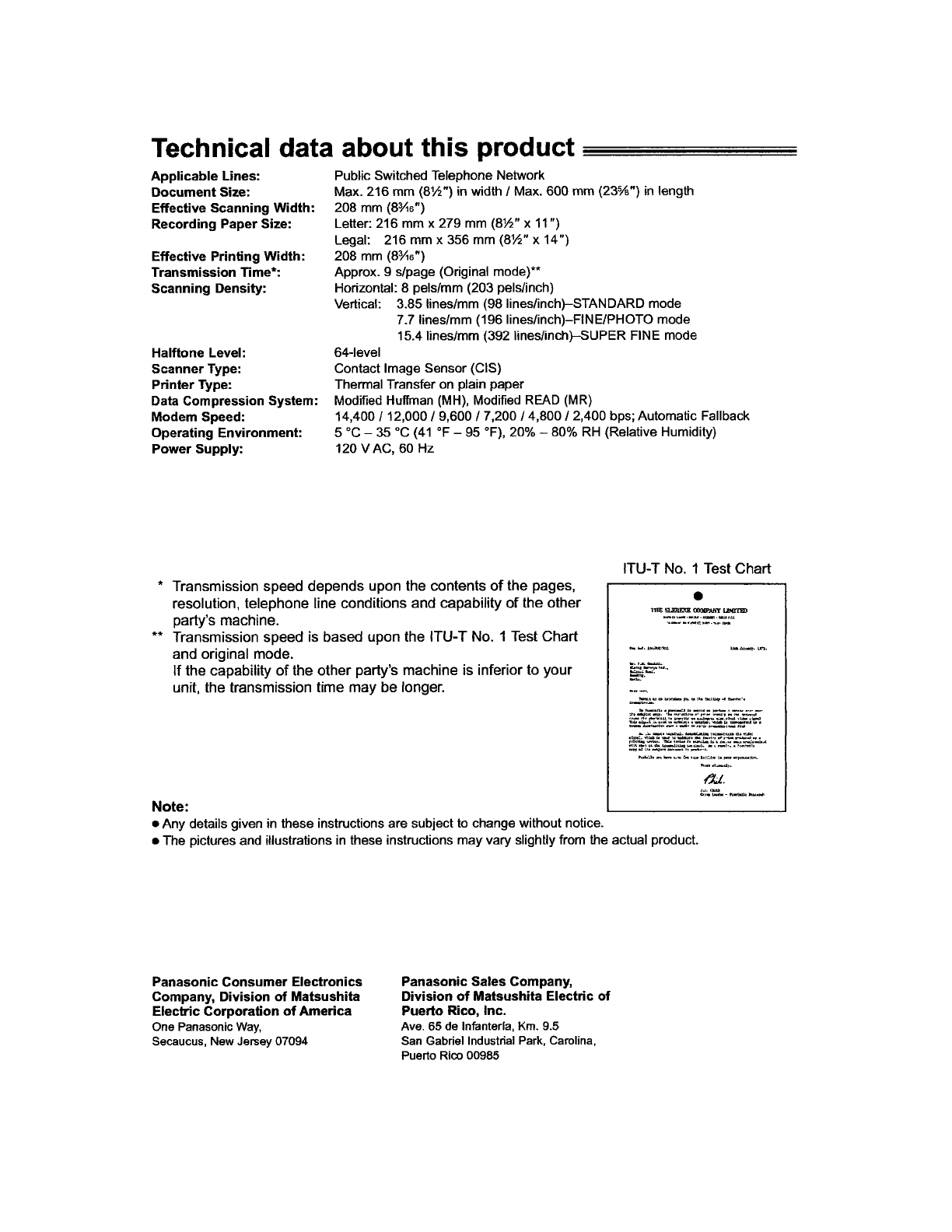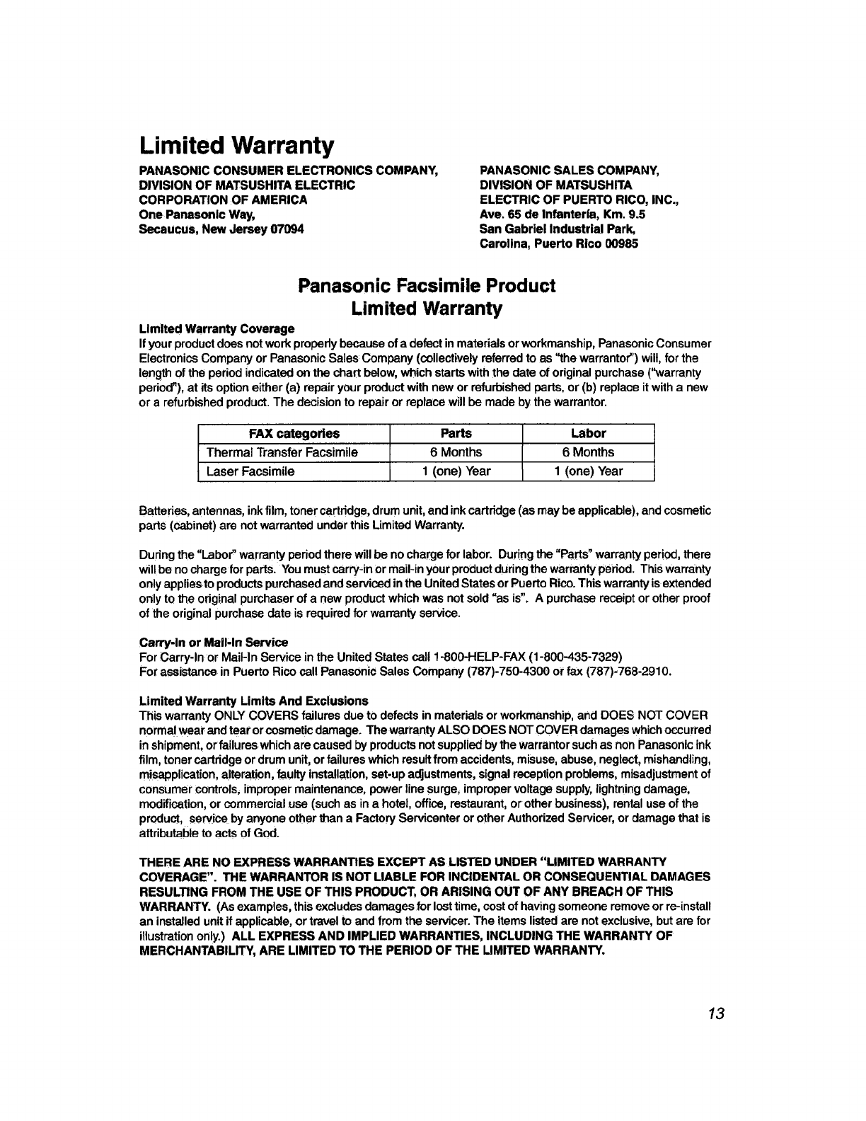 Panasonic Corporation of North America Fax w/ Cordless Telephone Base Users Manual