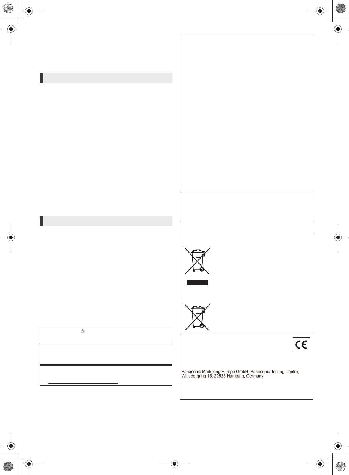 For disposal or recycling information, please visit Panasonic website: