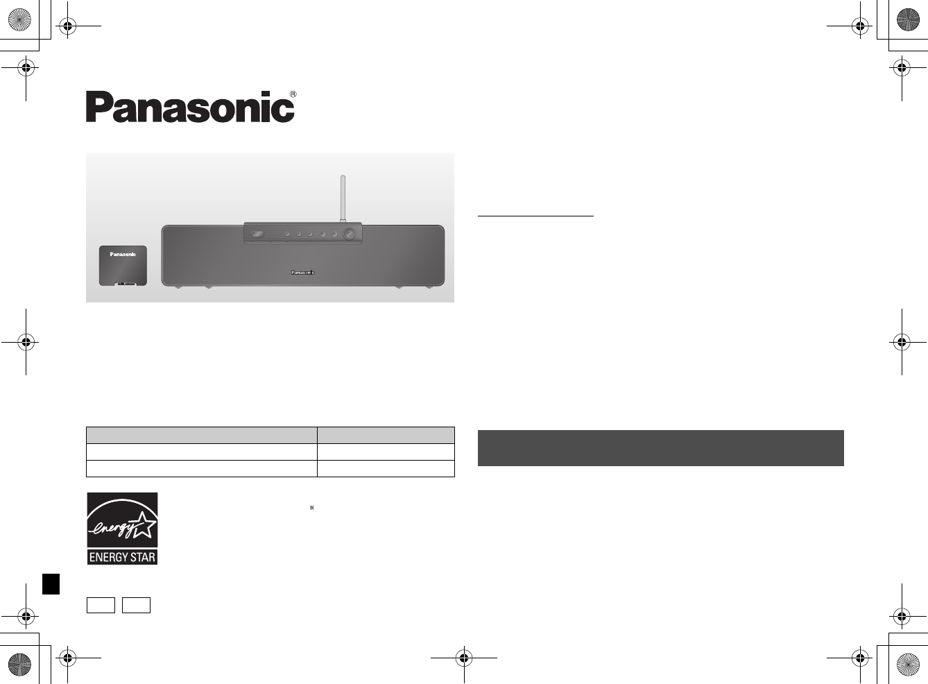 Panasonic Corporation of North America Wireless Sound System RQTX FX85 En