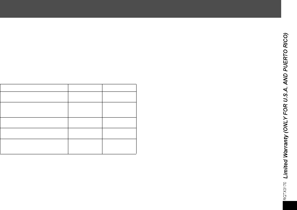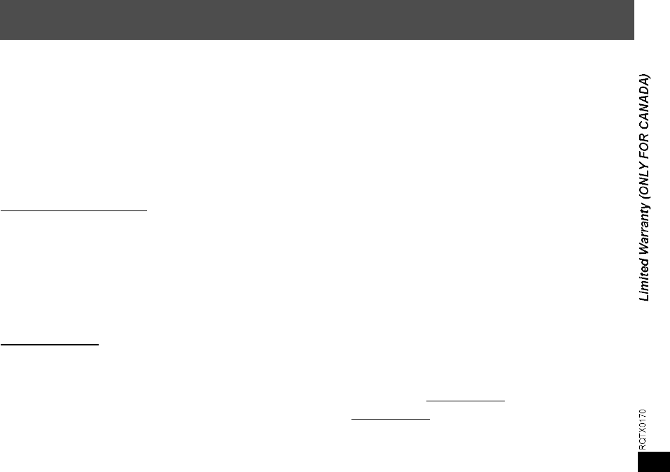 Panasonic Canada Inc. warrants this product to be free from defects in material and workmanship and agrees to remedy any such defect for a period as