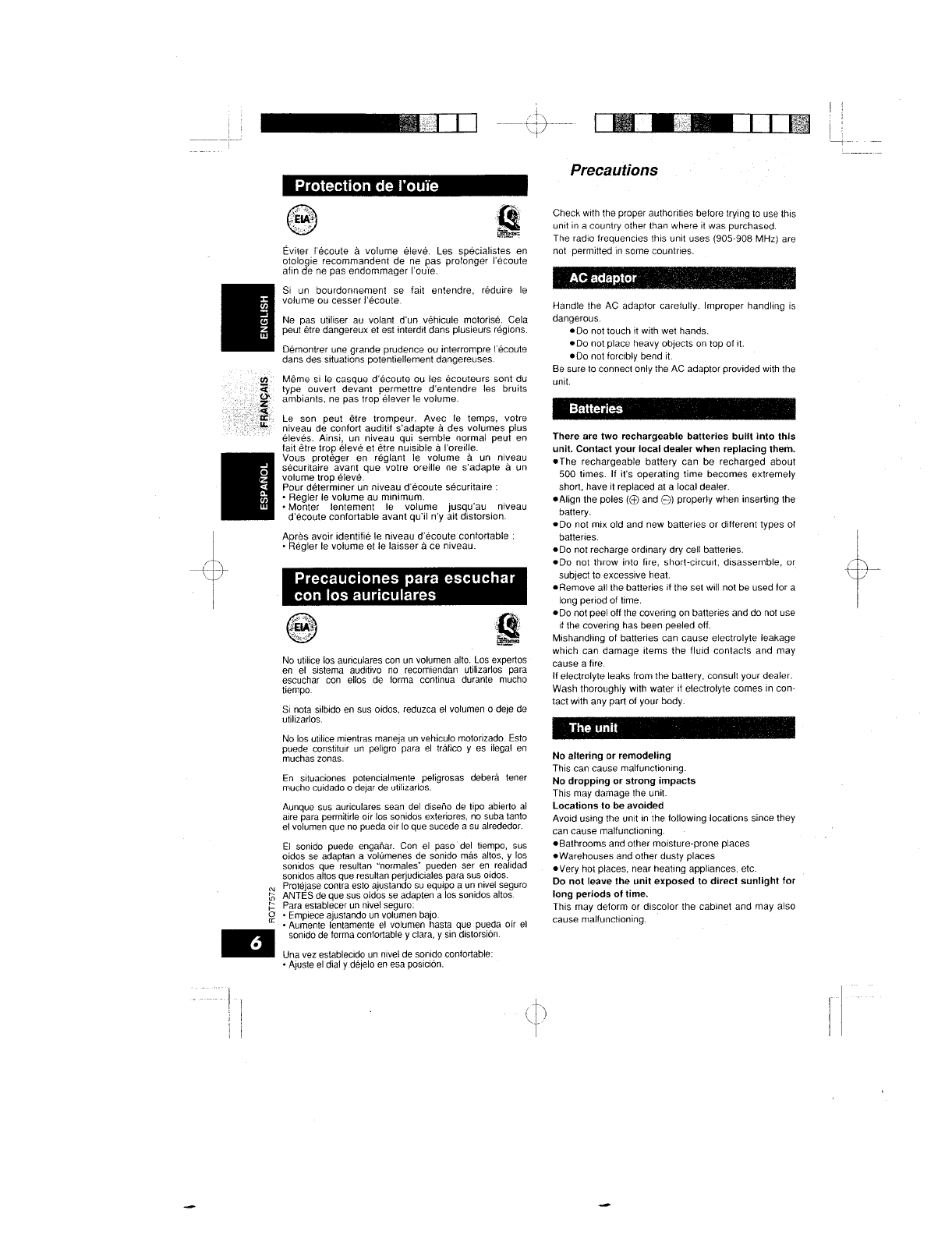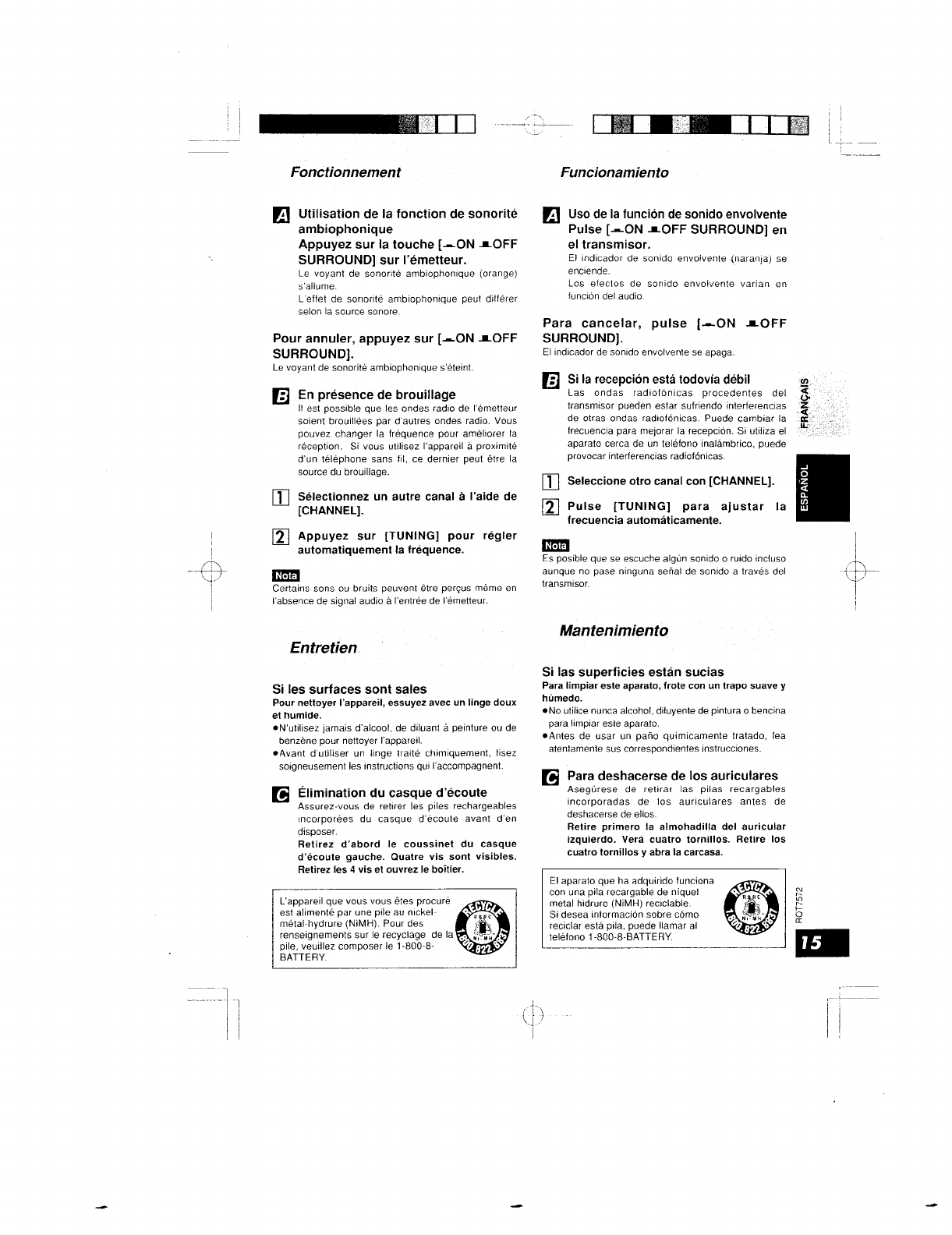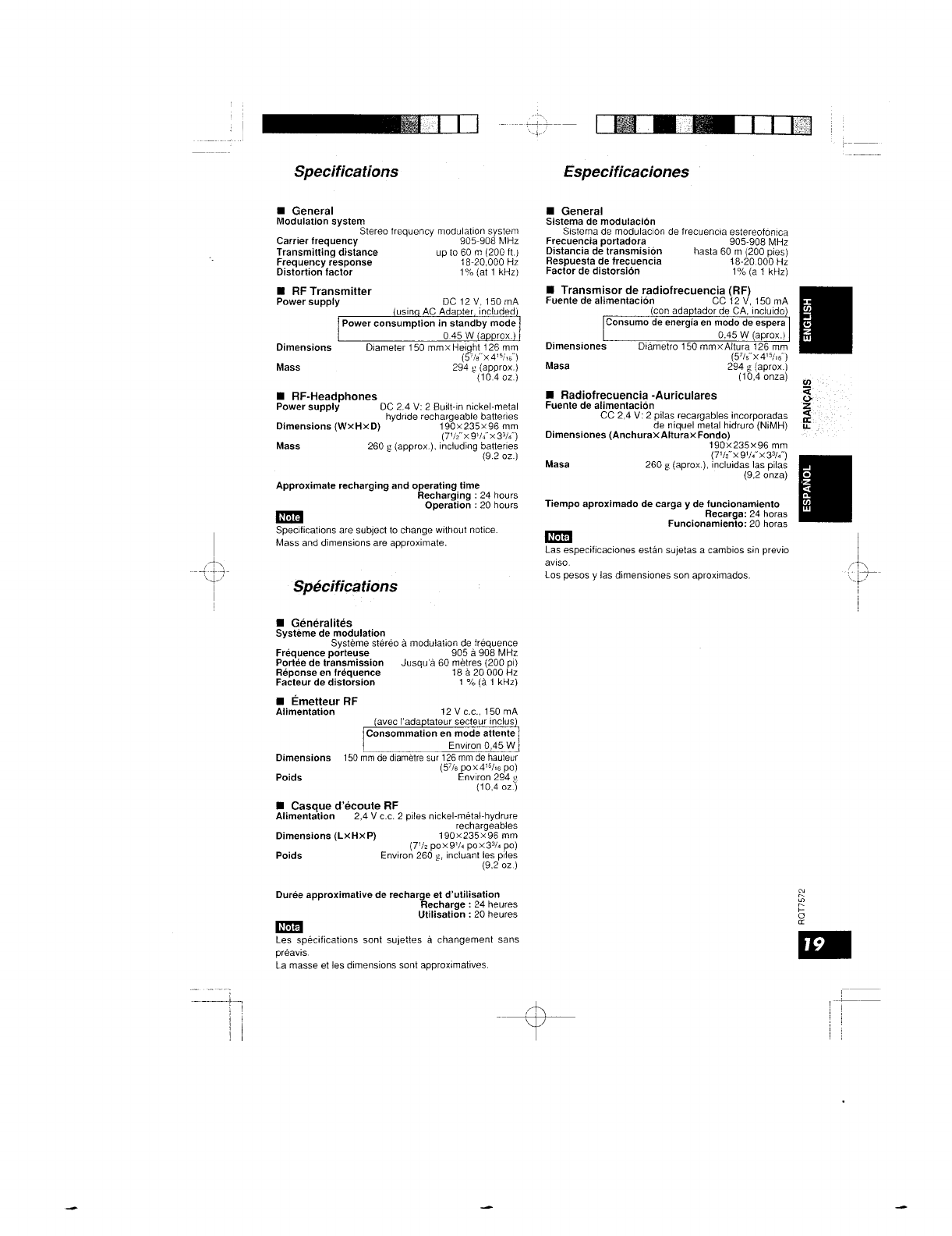 Panasonic of North America RP-WF930H Wireless Headphone User Manual