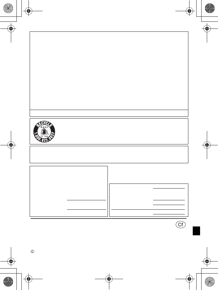 Panasonic Canada Inc. garantit que ce produit est exempt de défauts de matériaux et de main-d’œuvre dans