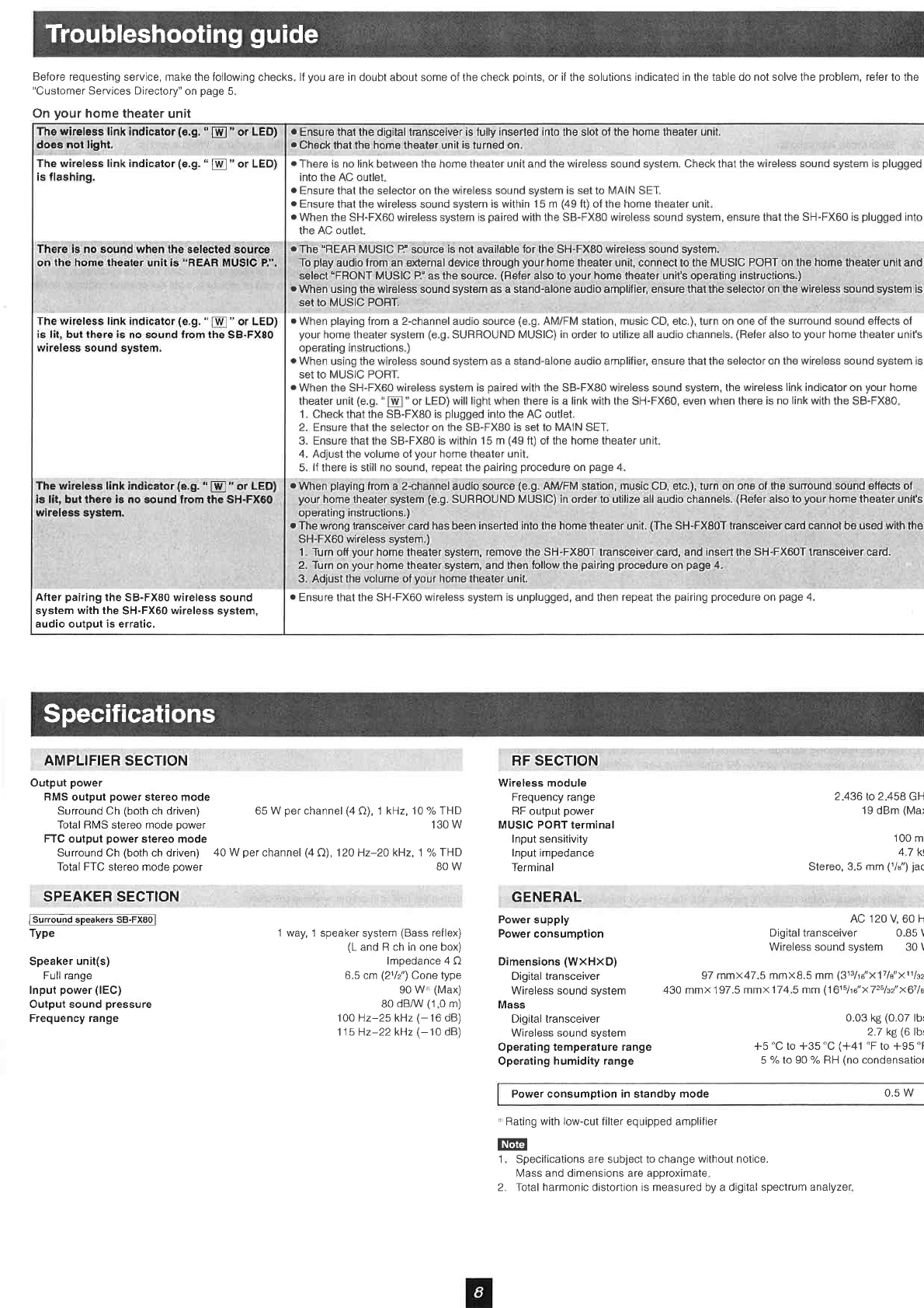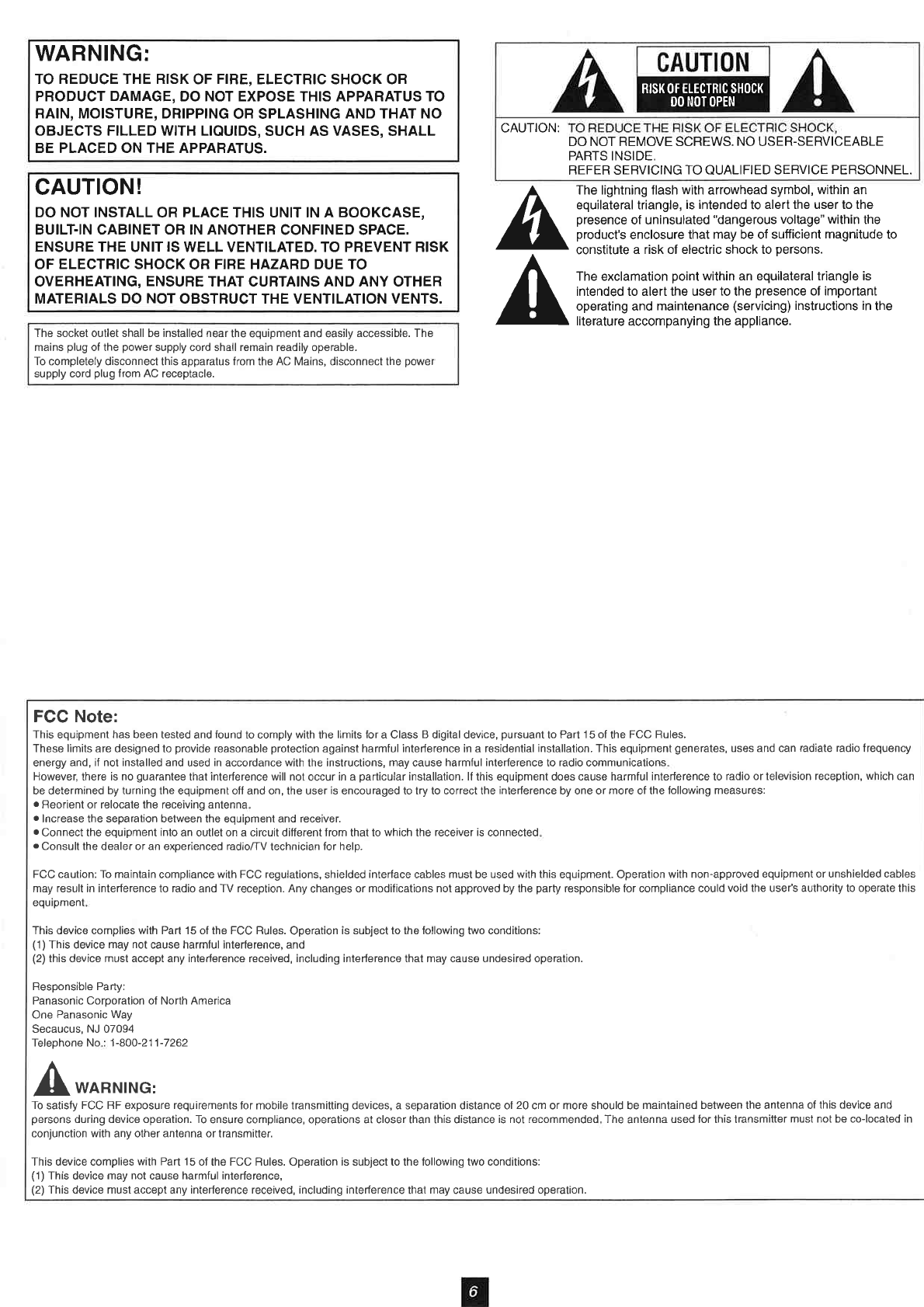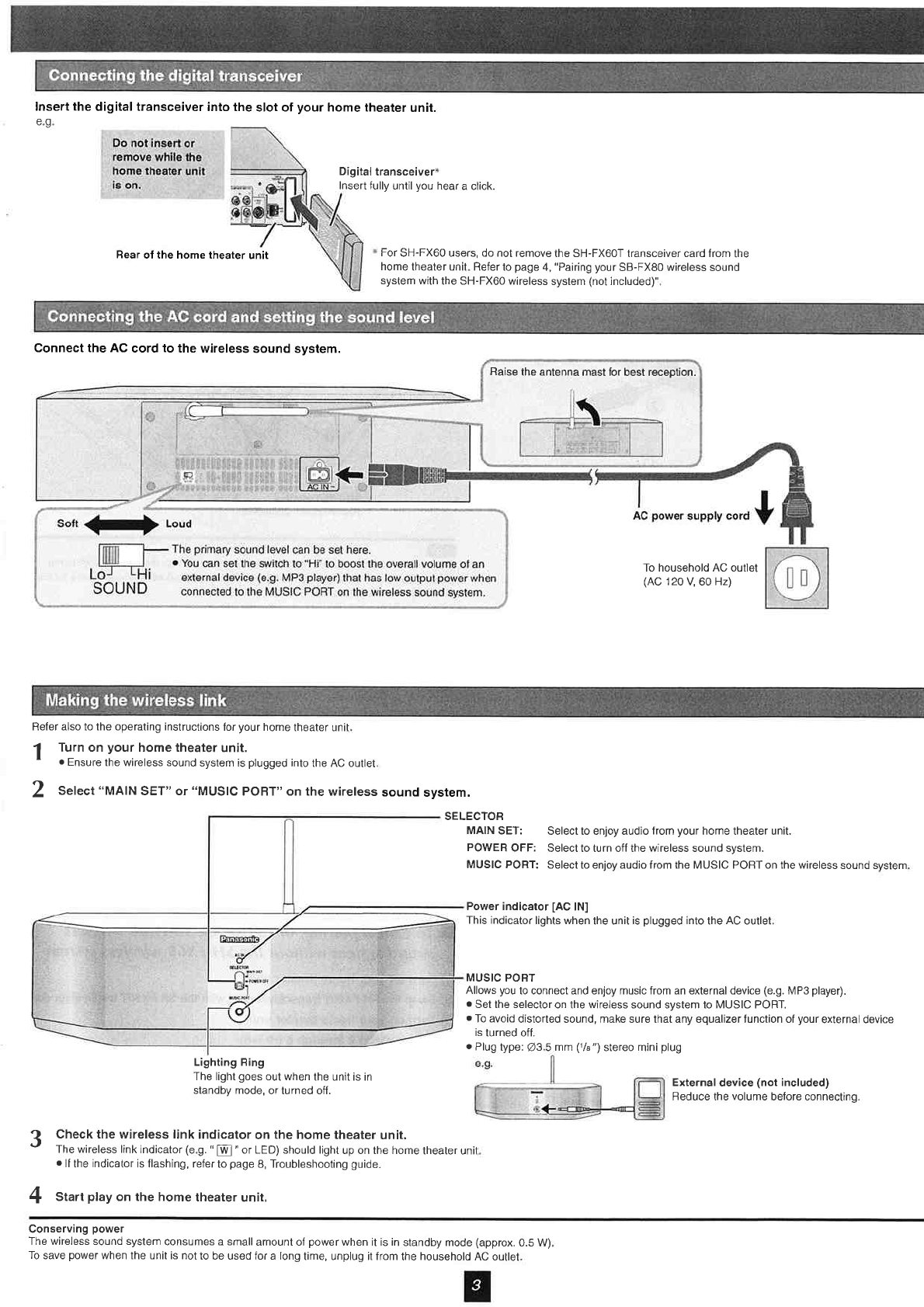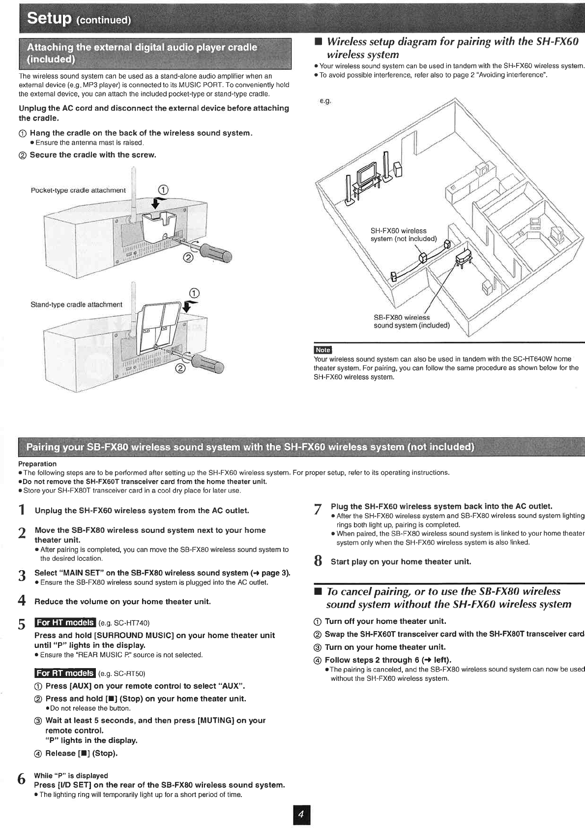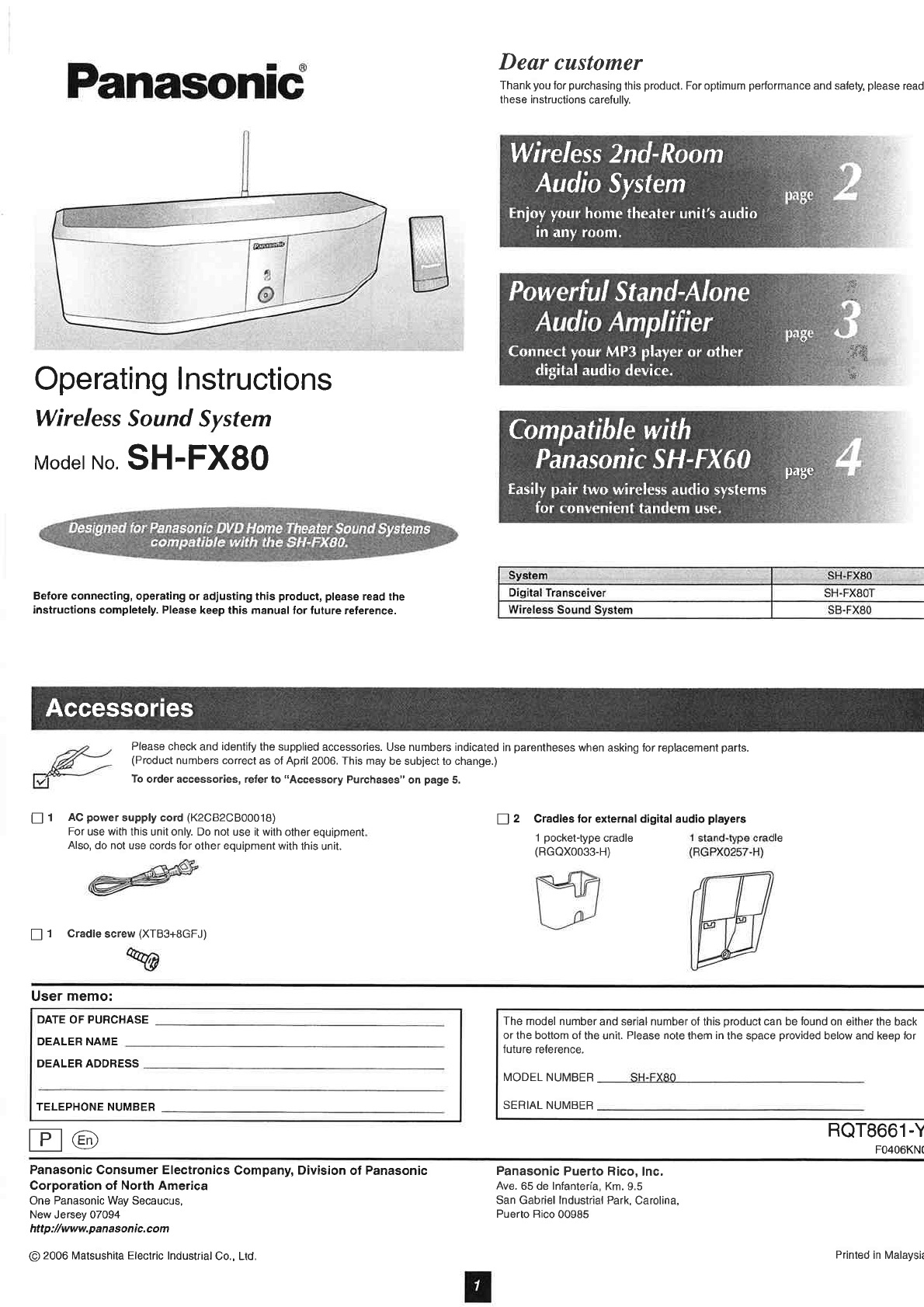 Panasonic Corporation of North America WIRELESS SOUND SYSTEM MODEL: SB-FX80 USERS MANUAL