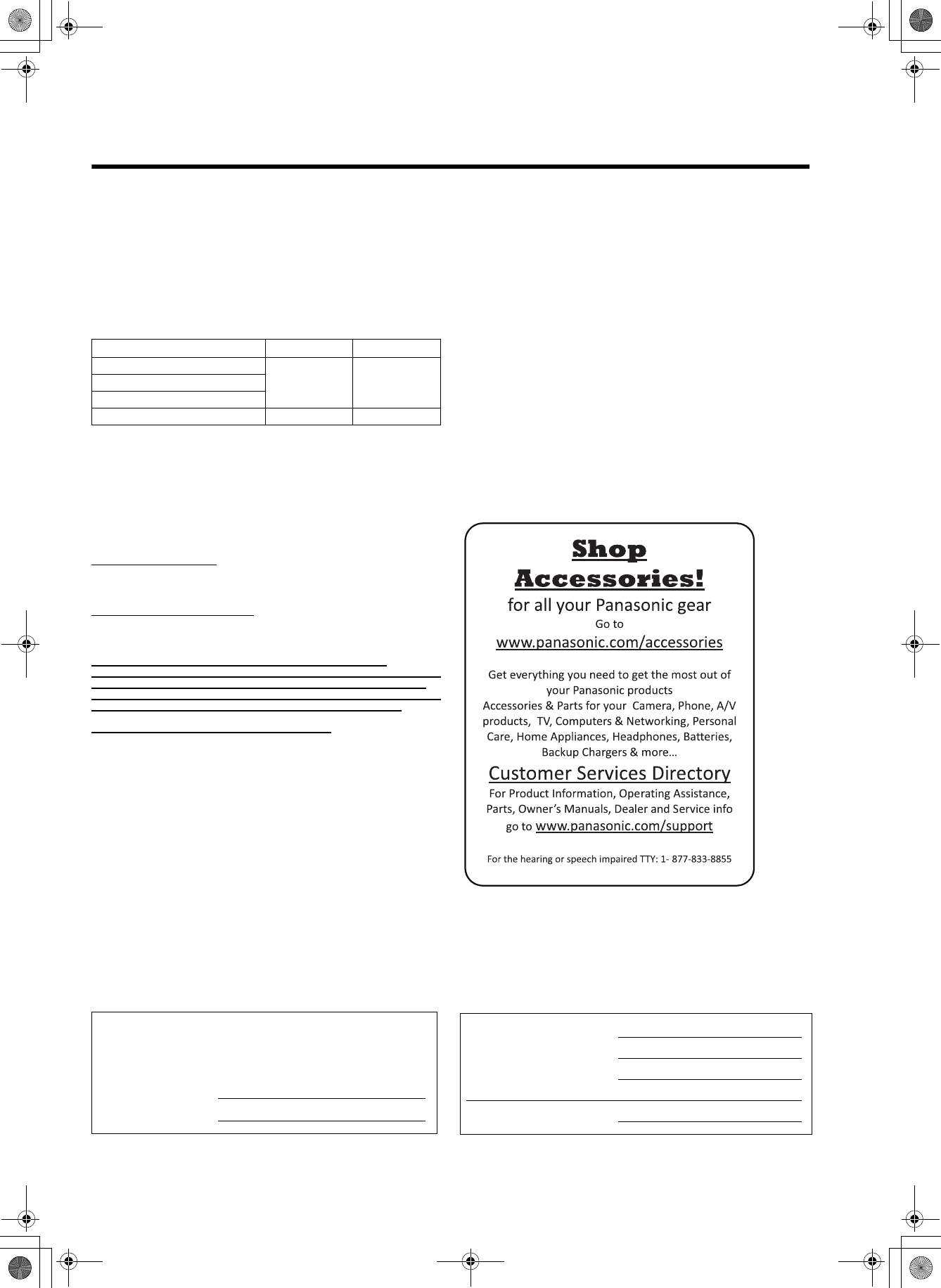 U.S.A. and Puerto Rico: www.panasonic.com/support