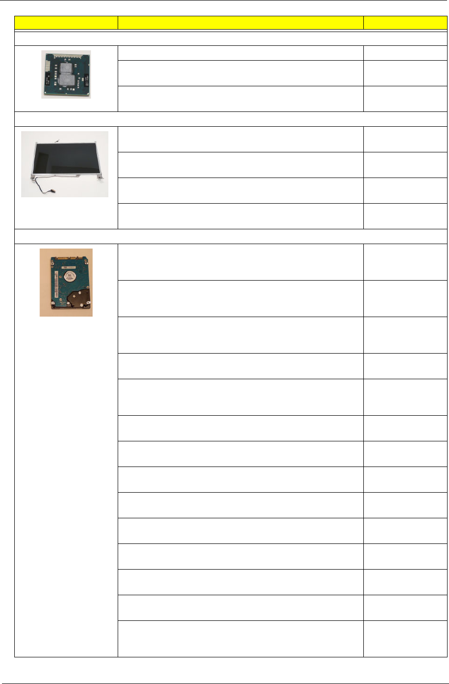 - FRU (Field Replaceable Unit) List