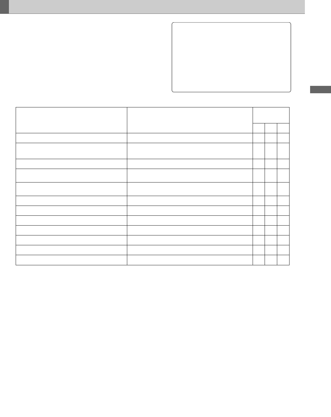 MENU USER MENU SELECT R/W ................................ 193