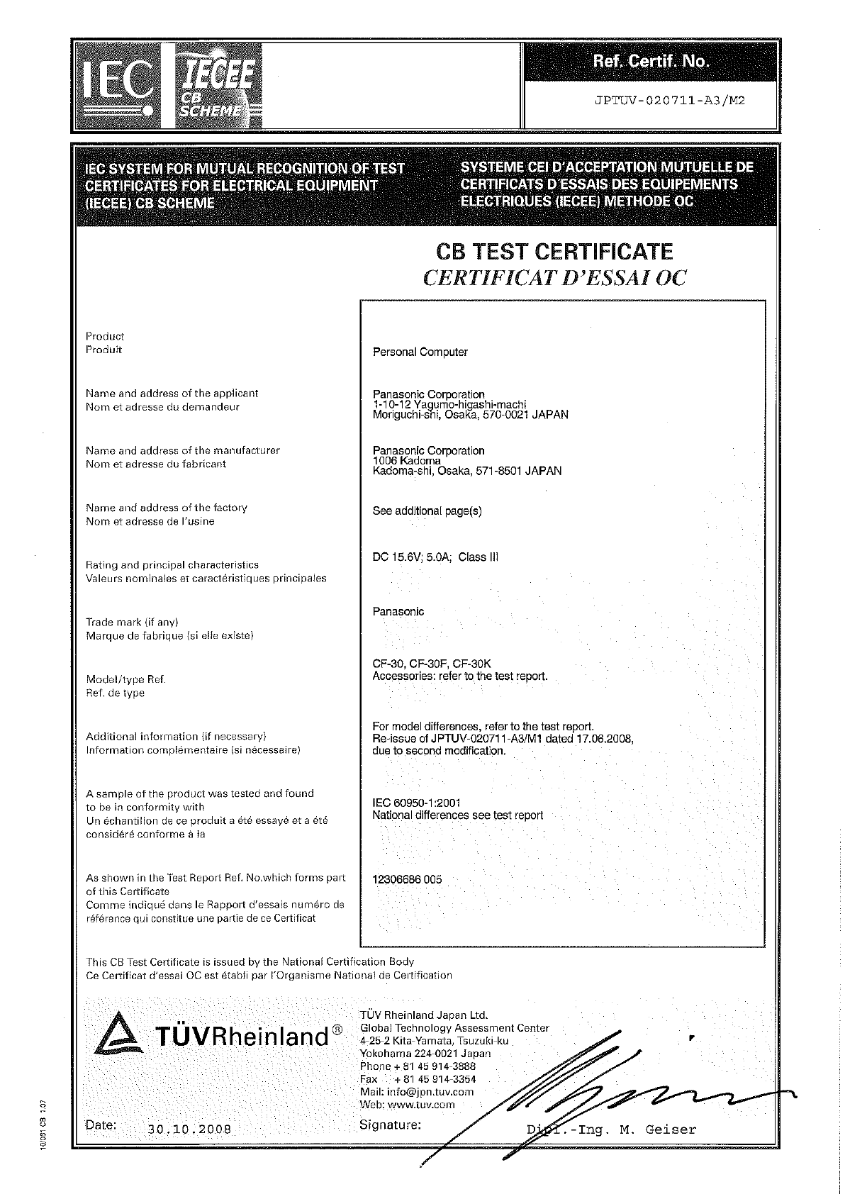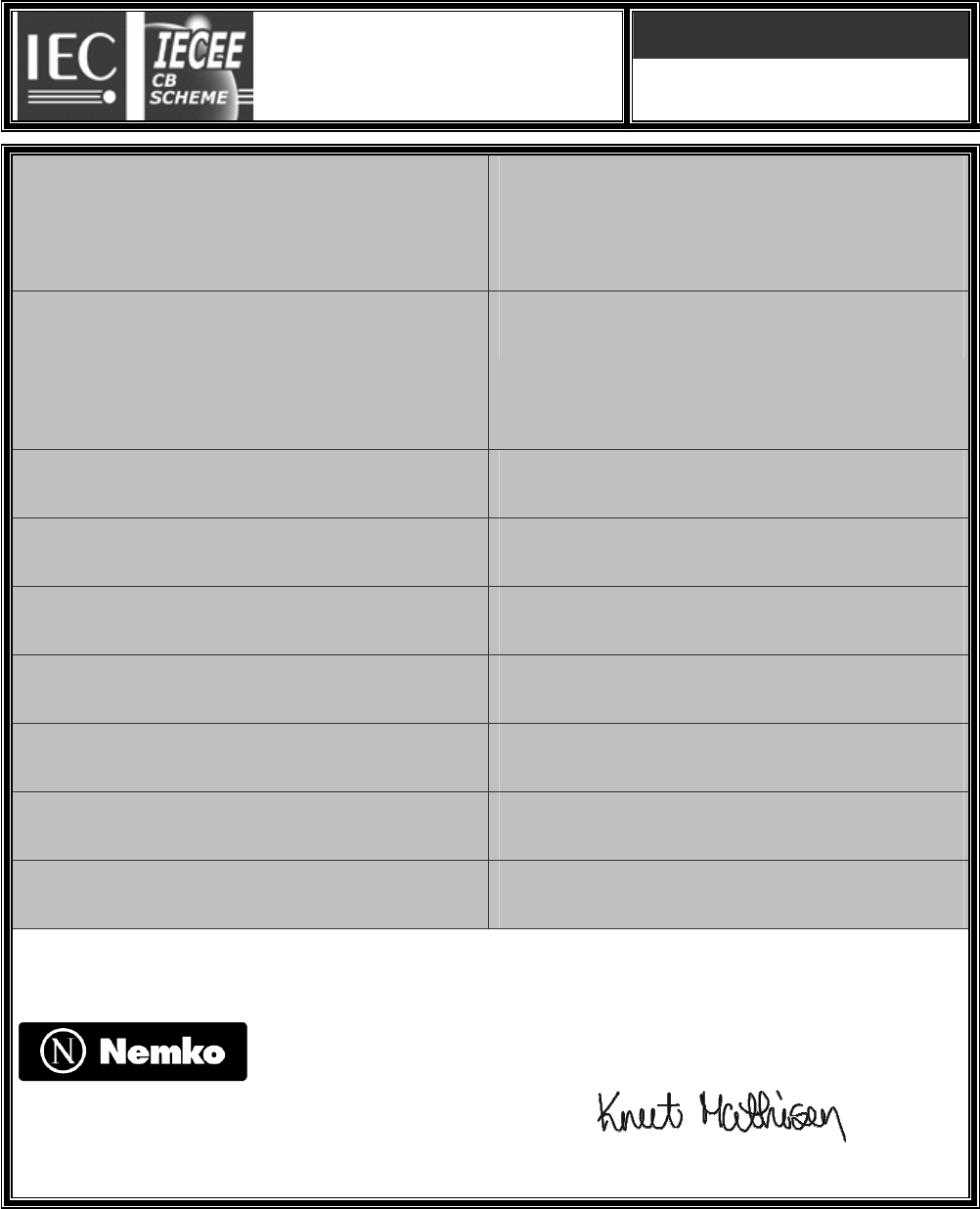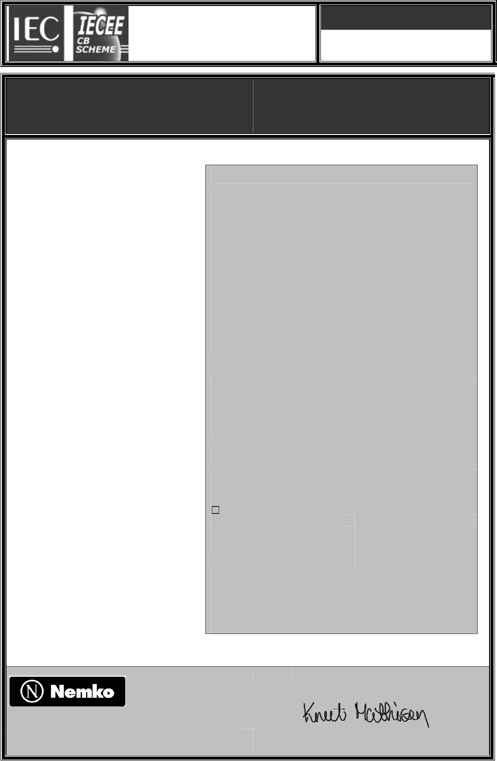 This CB Test Certificate is issued by the National Certification Body