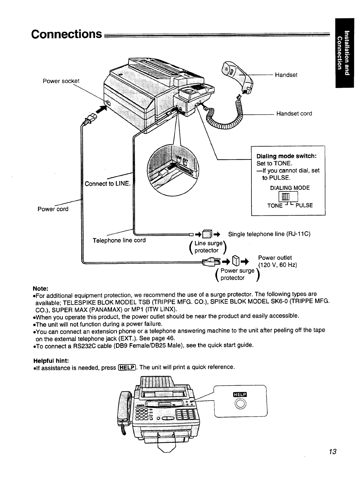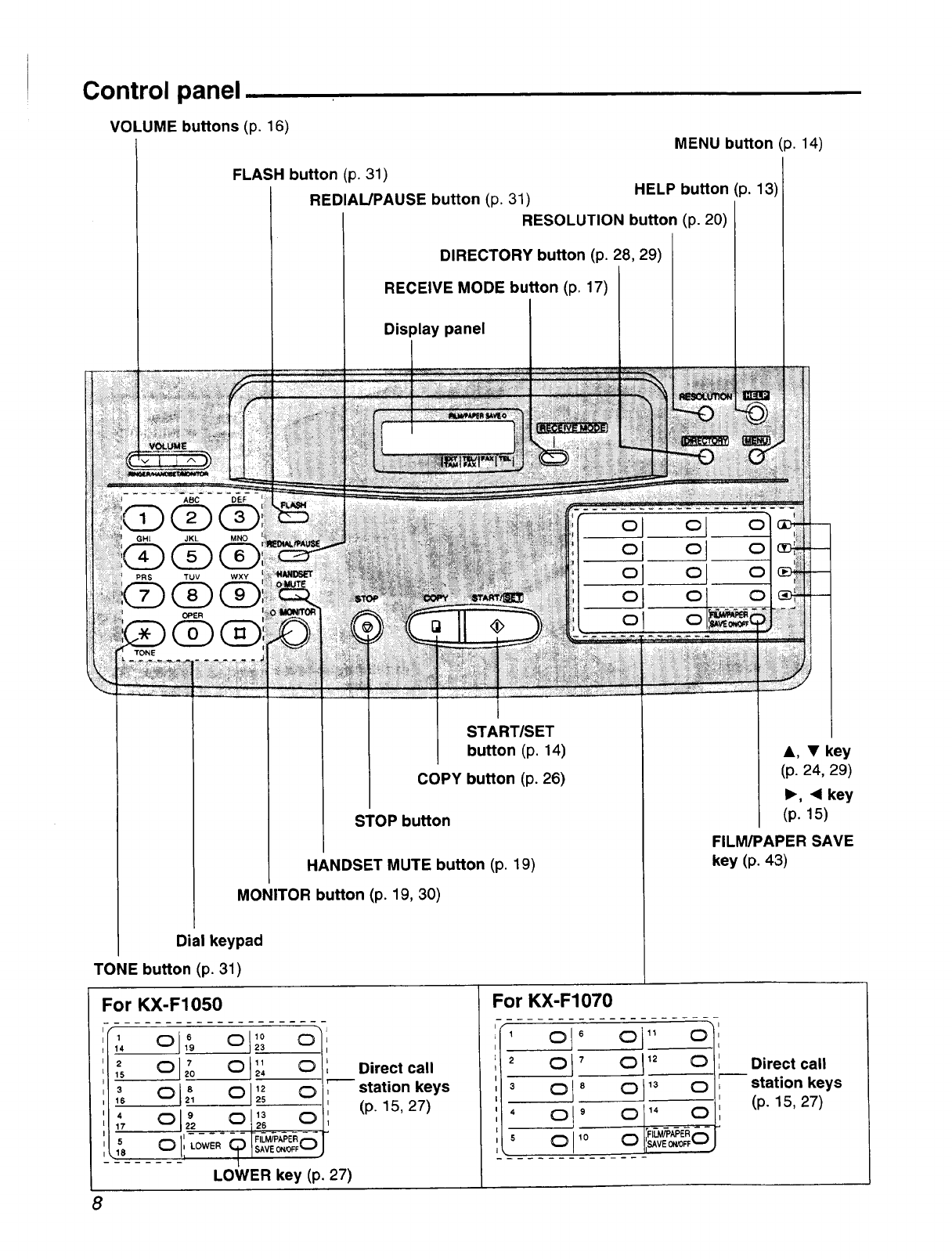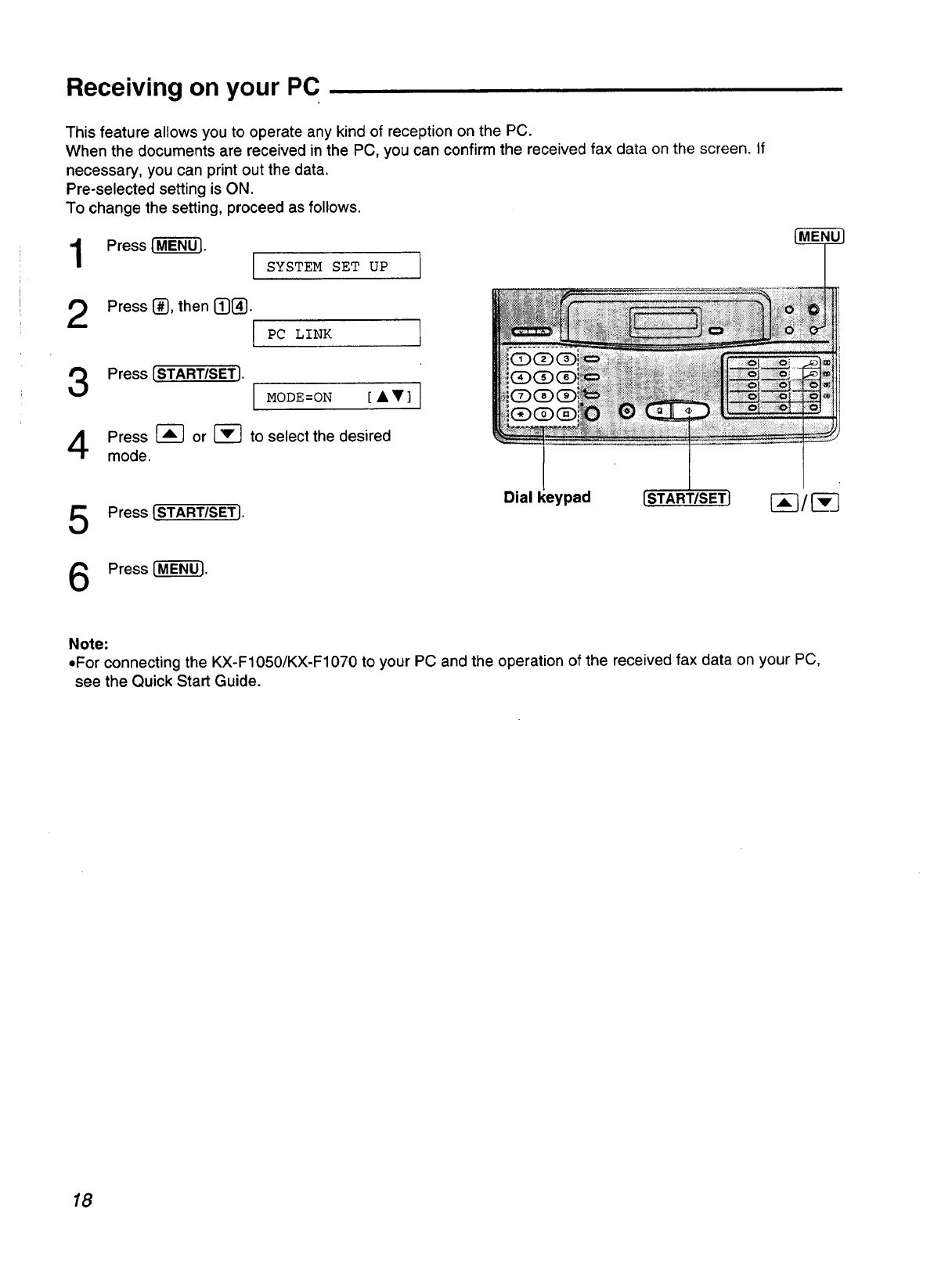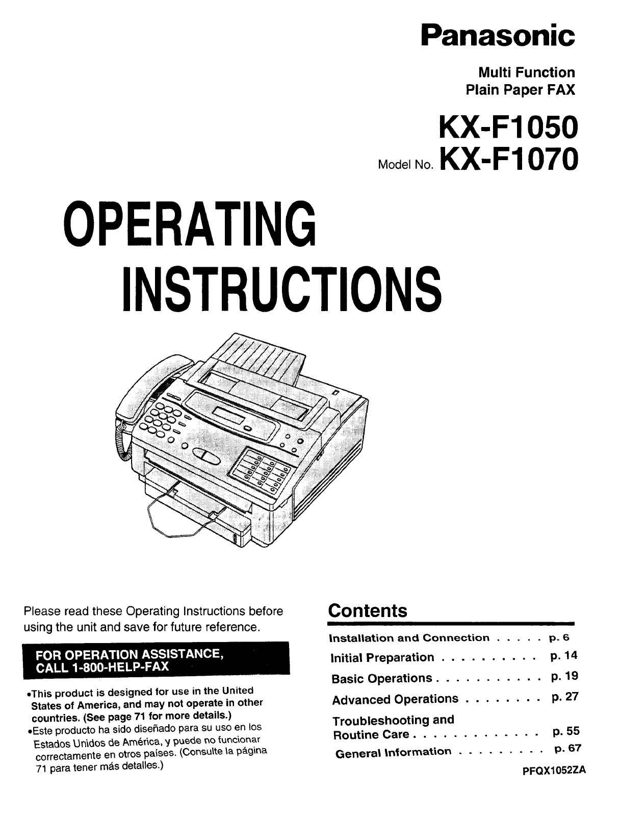 This guide summarizes installation and basic operations. To connect the KX-F1050/KX-F1070 to your