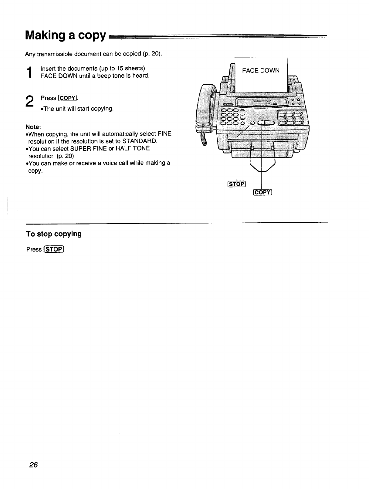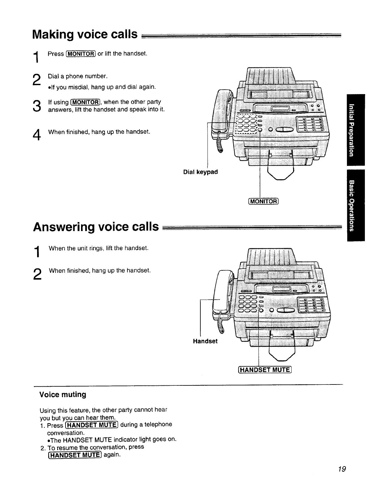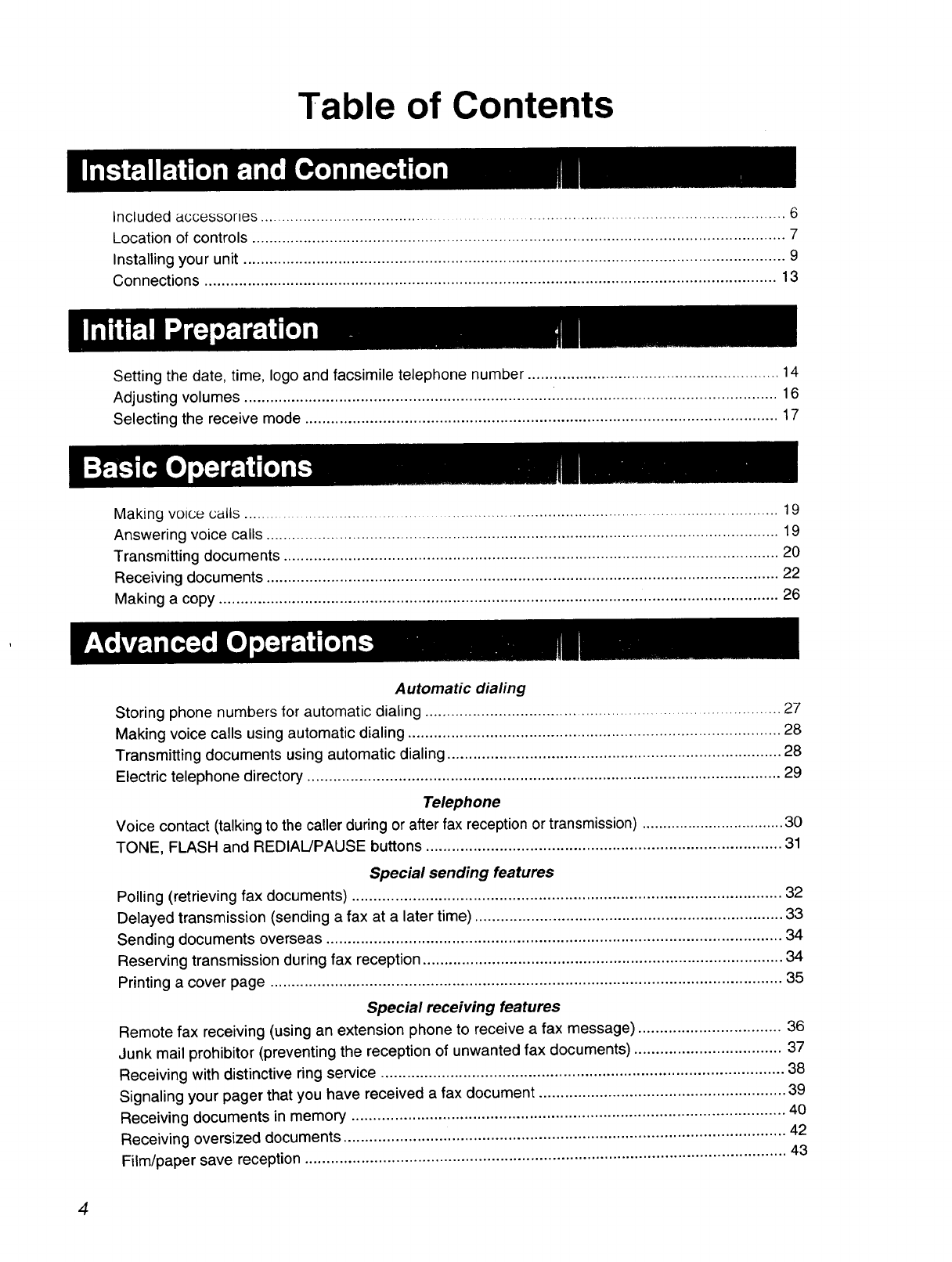 This manual describes installation, initial preparation, how to use a facsimile, copy and telephone,