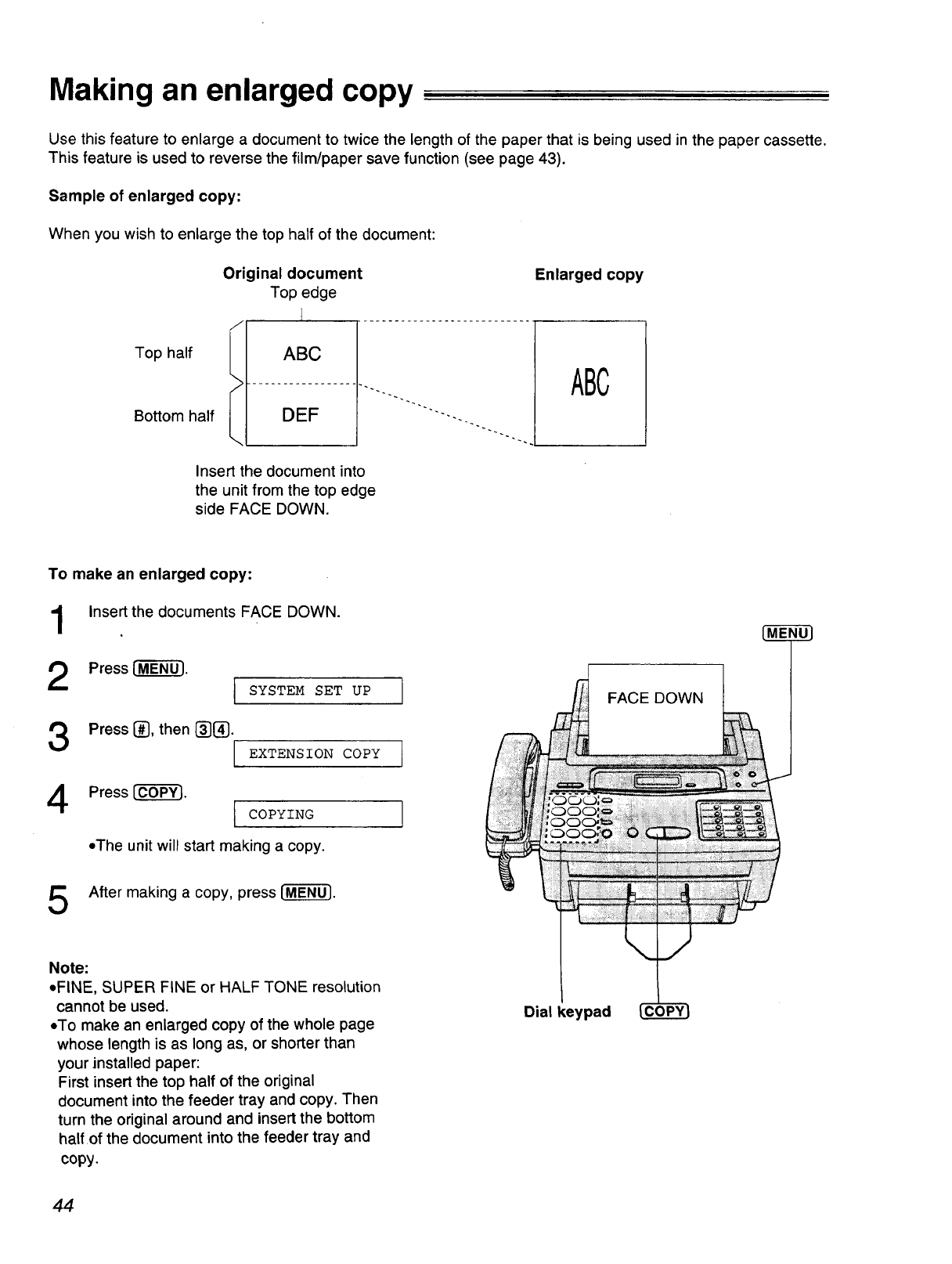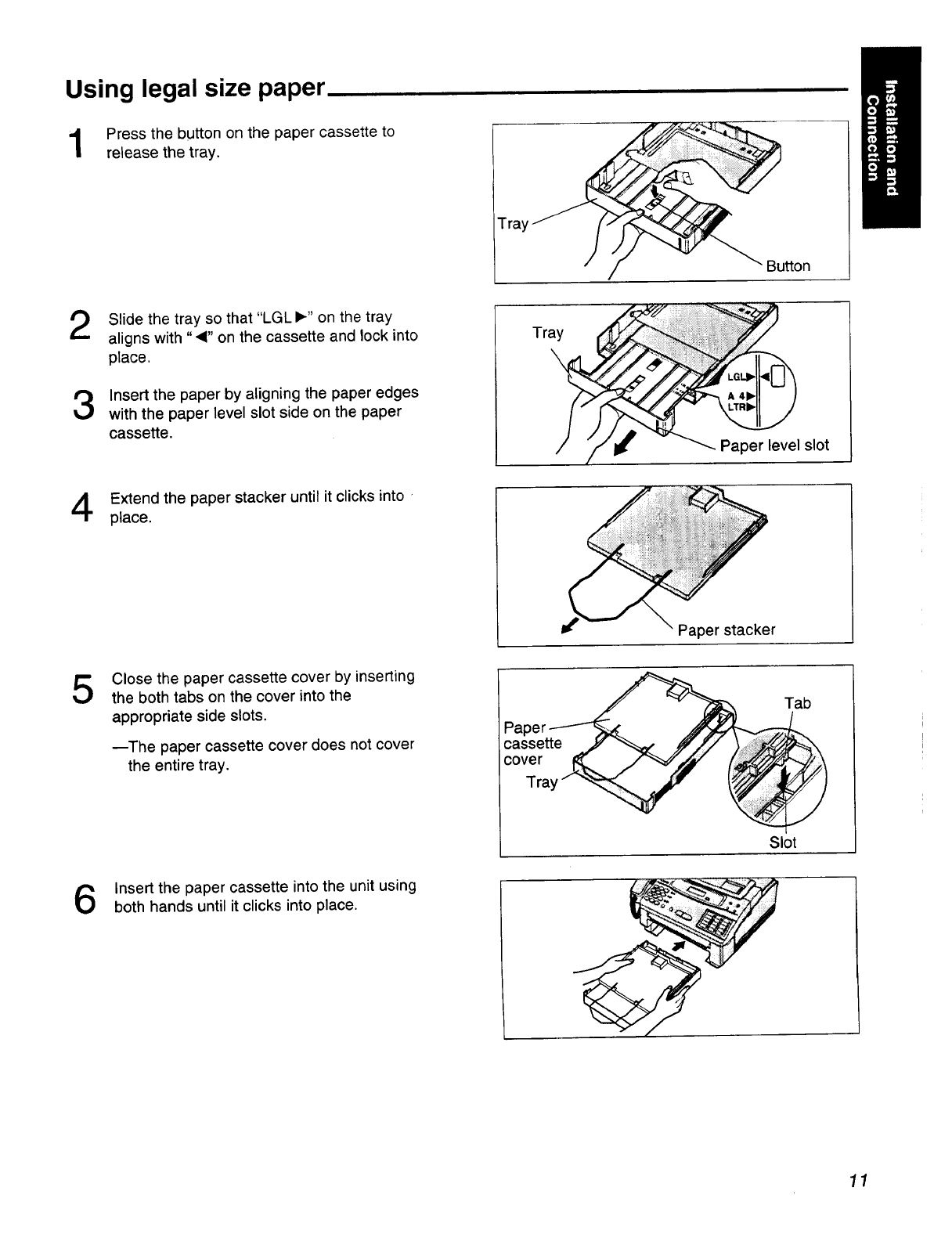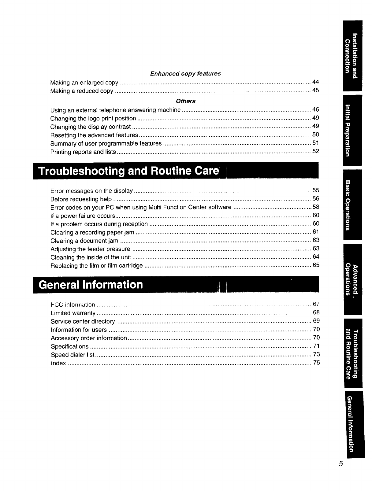 This manual describes installation, initial preparation, how to use a facsimile, copy and telephone,