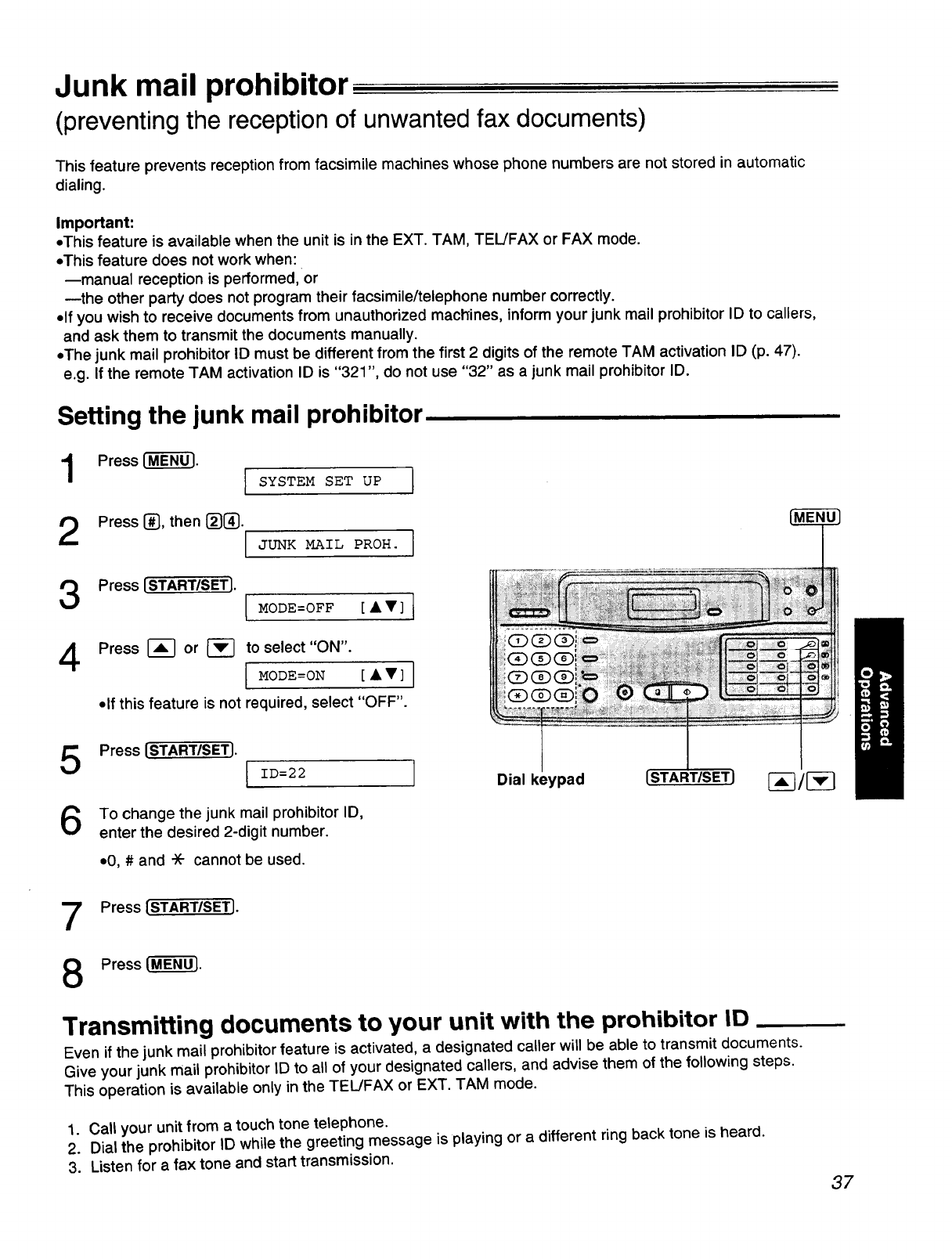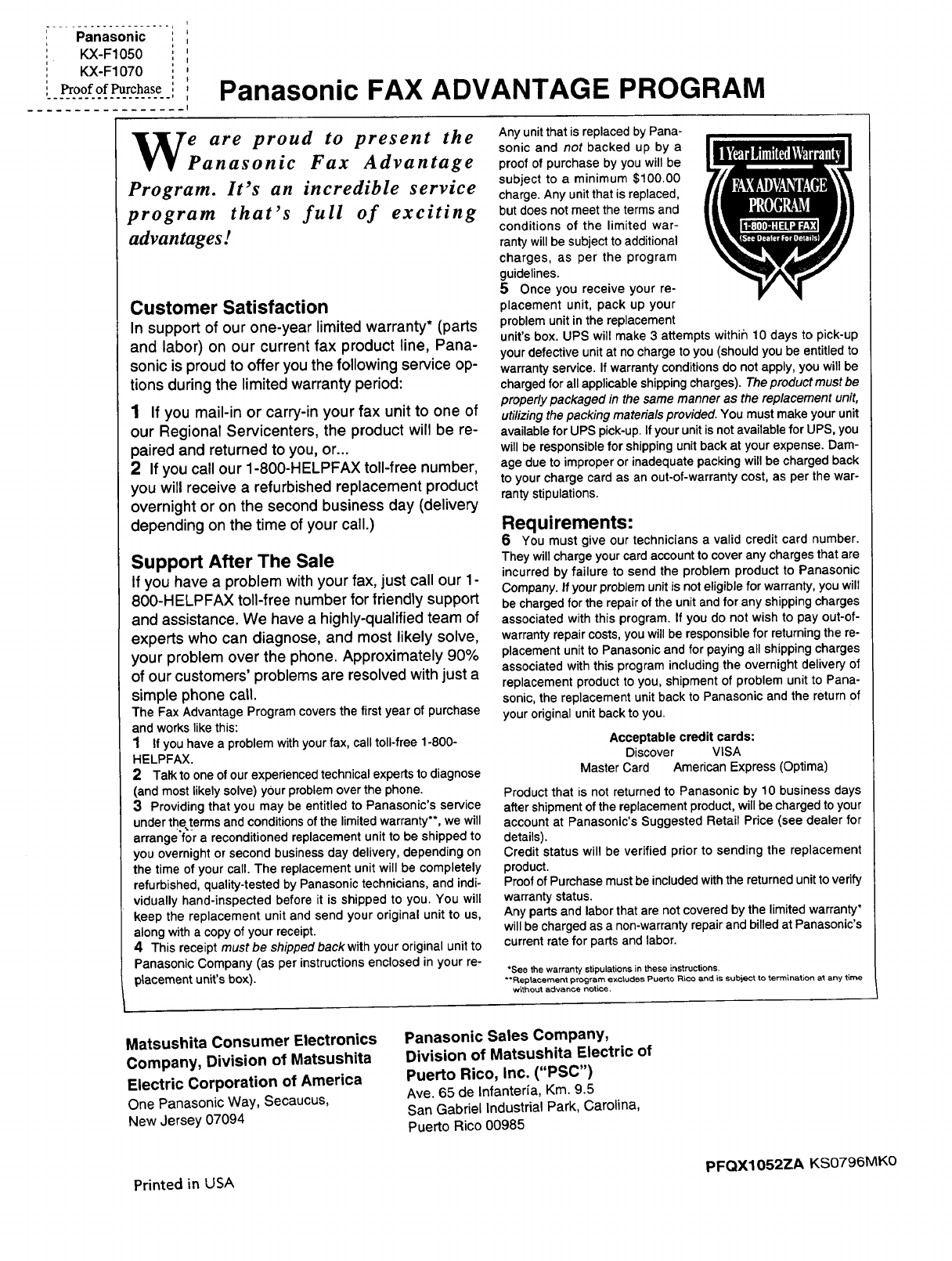 Panasonic KX F1050 User Manual FACSIMILE Manuals And Guides 97120060