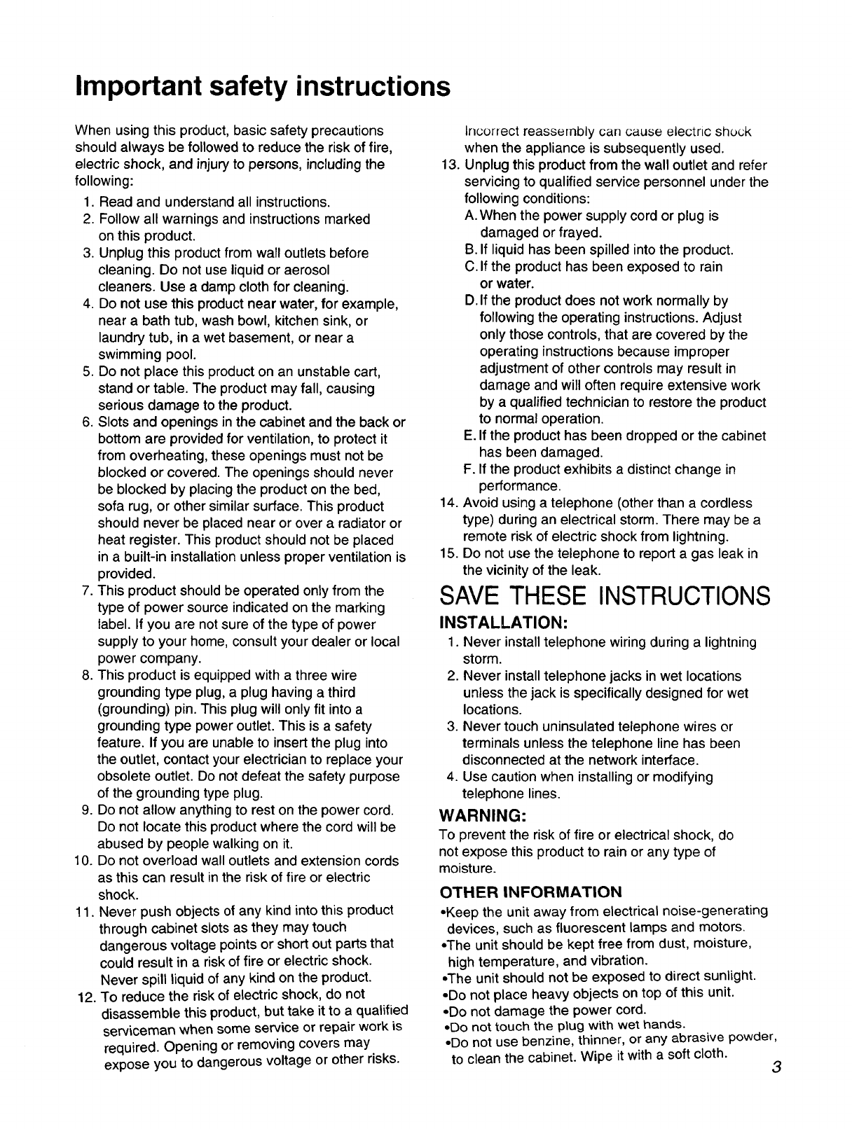 3. Unplug this product from wall outlets before