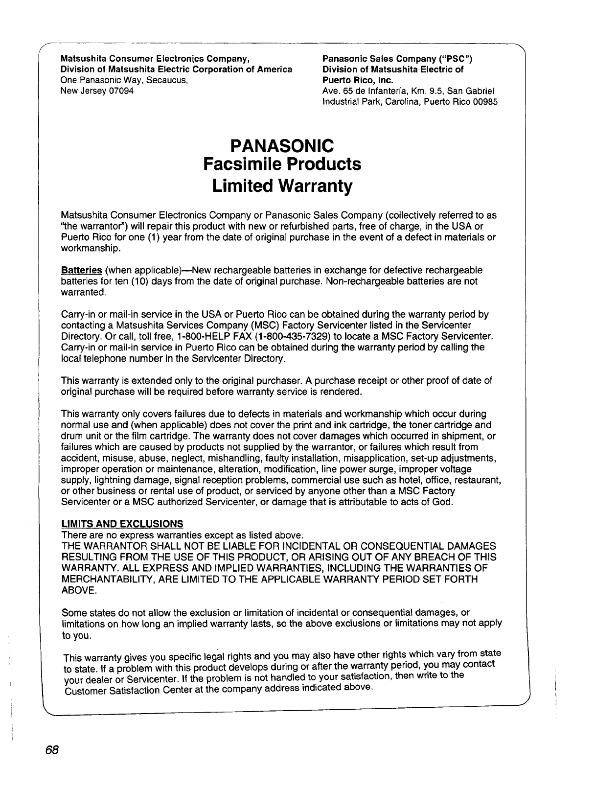Thank you for purchasing the Panasonic Plain Paper Facsimile.