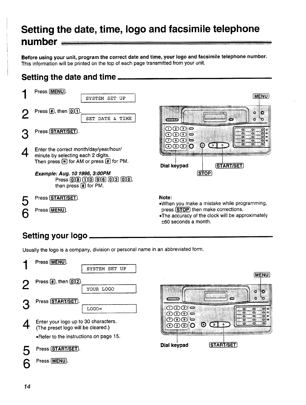 To program this information into your facsimile machine, complete all the instructions on pages 14-16.