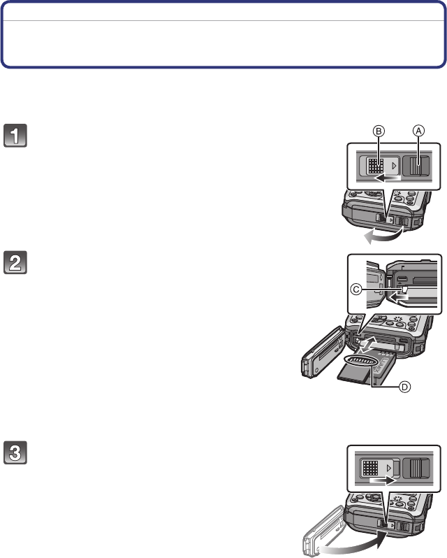 •When closing, do not set the [LOCK] switch to the locked side. Doing so may cause damage or