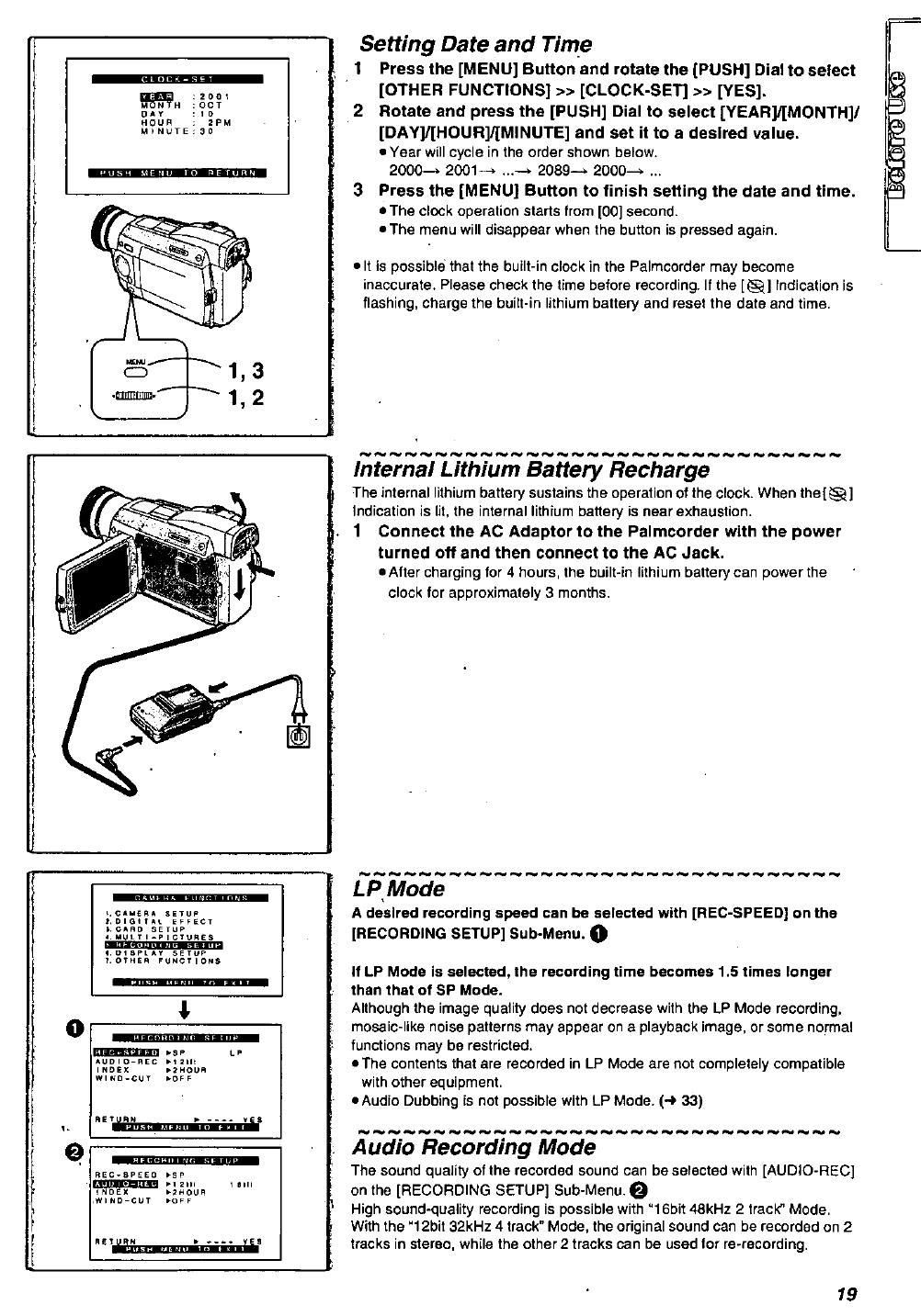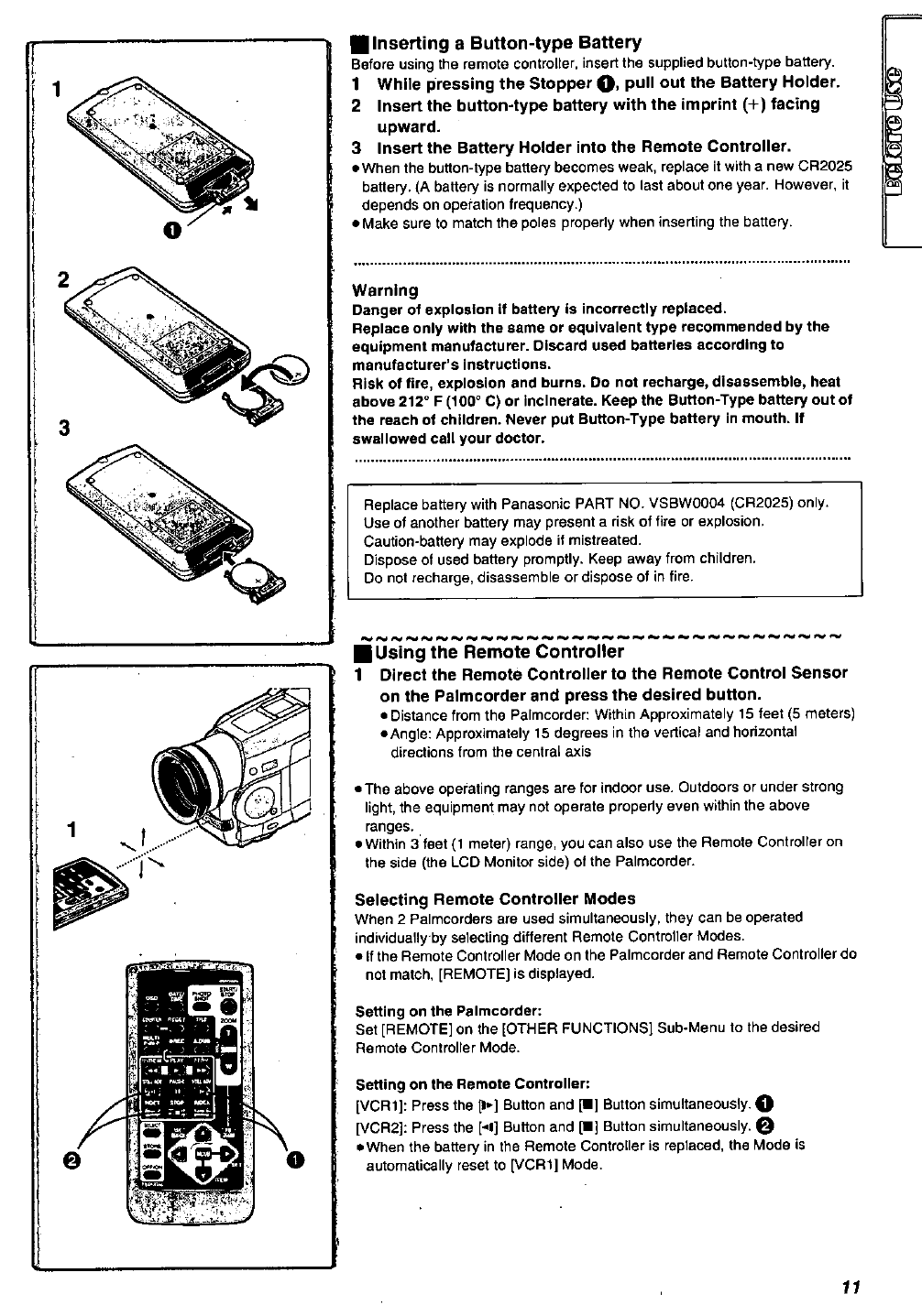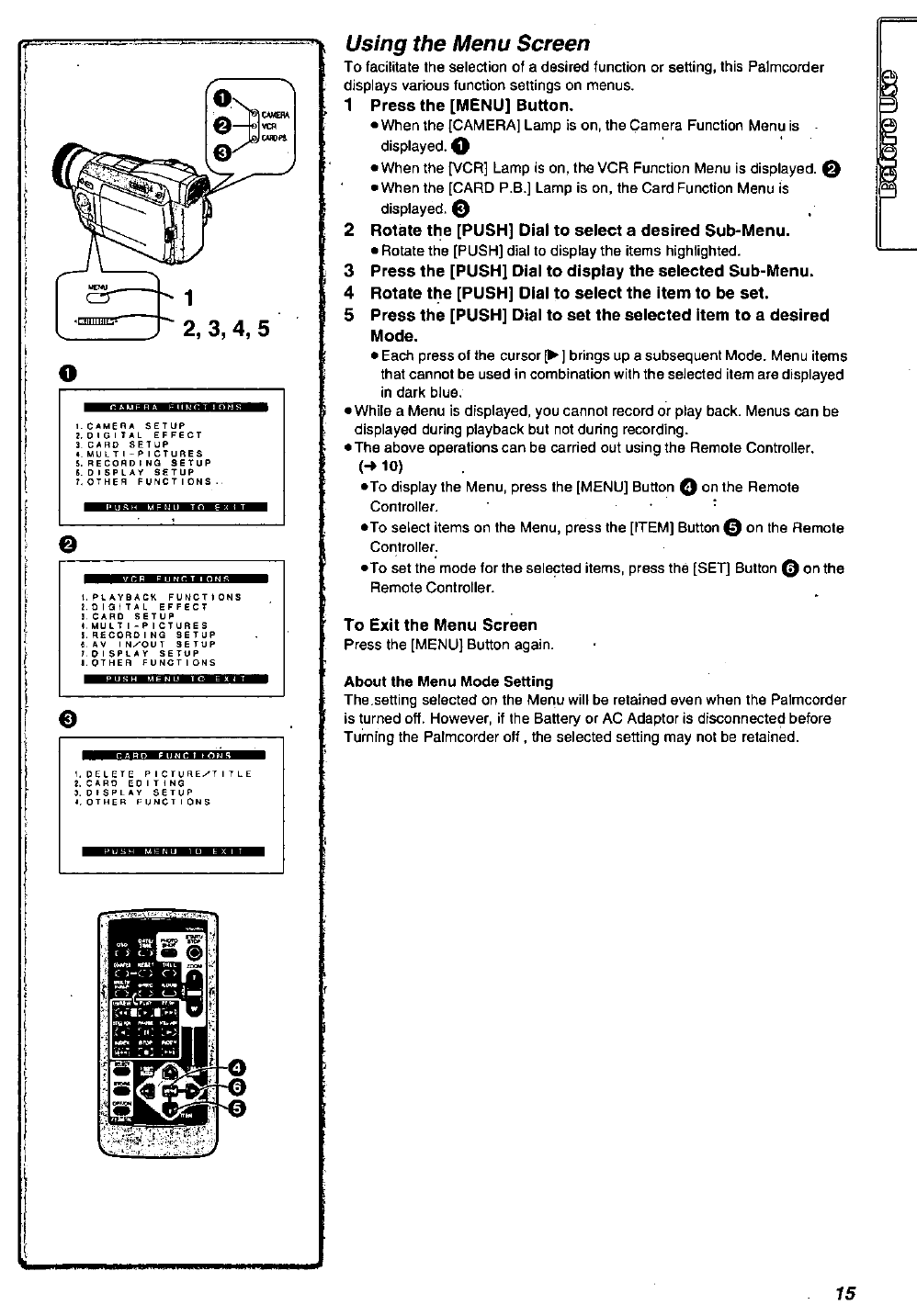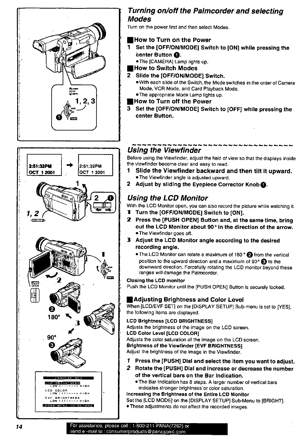 - TURNING ON/OFF THE PALMCORDER AND SELECTING MODES