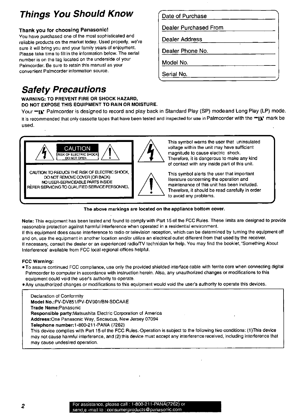 PV-DV851 - Operating Instructions PVDV901 Free User Guide for Panasonic Camcorder, Manual - page3