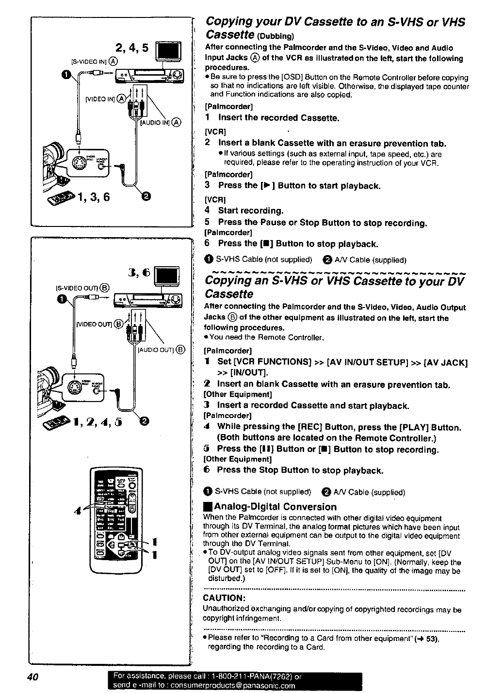 - COPYING YOUR DV CASSETTE TO A S-VHS OR VHS CASSETTE (DUBBING)