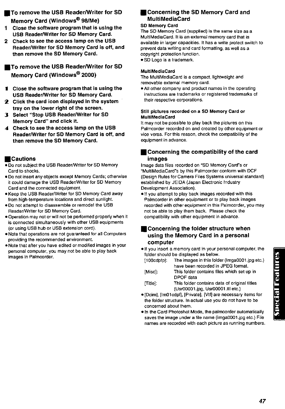 - USING THE SUPPLIED USB READER/WRITER FOR SD MEMORY CARD