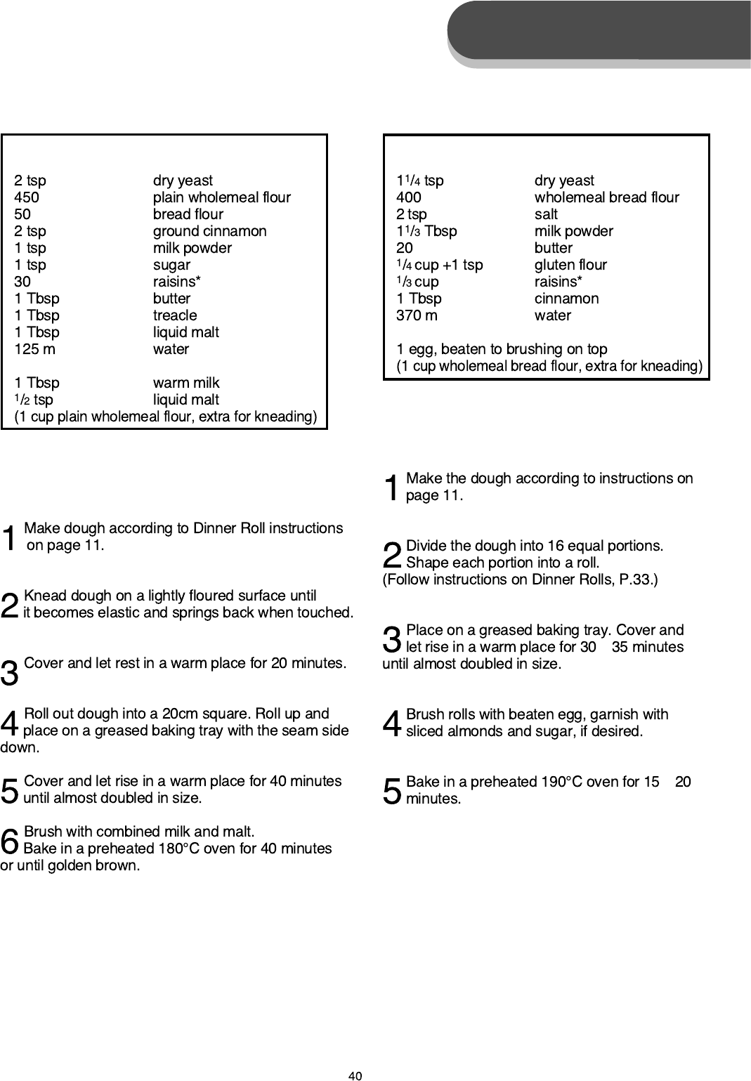 (Use WHOLE WHEAT RAISIN DOUGH Mode)