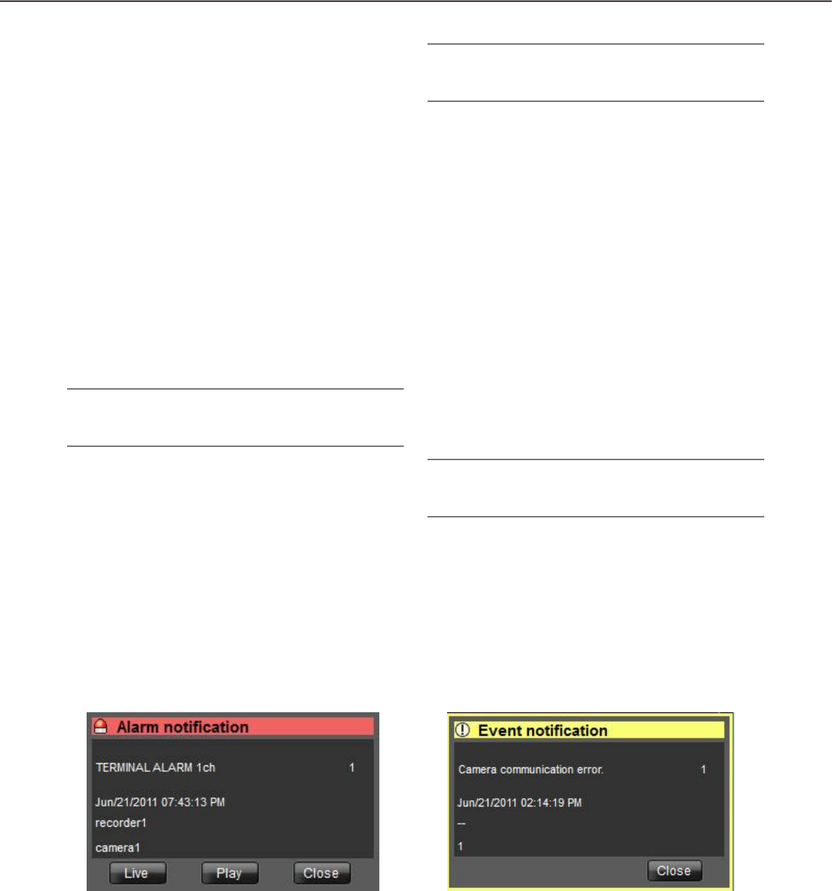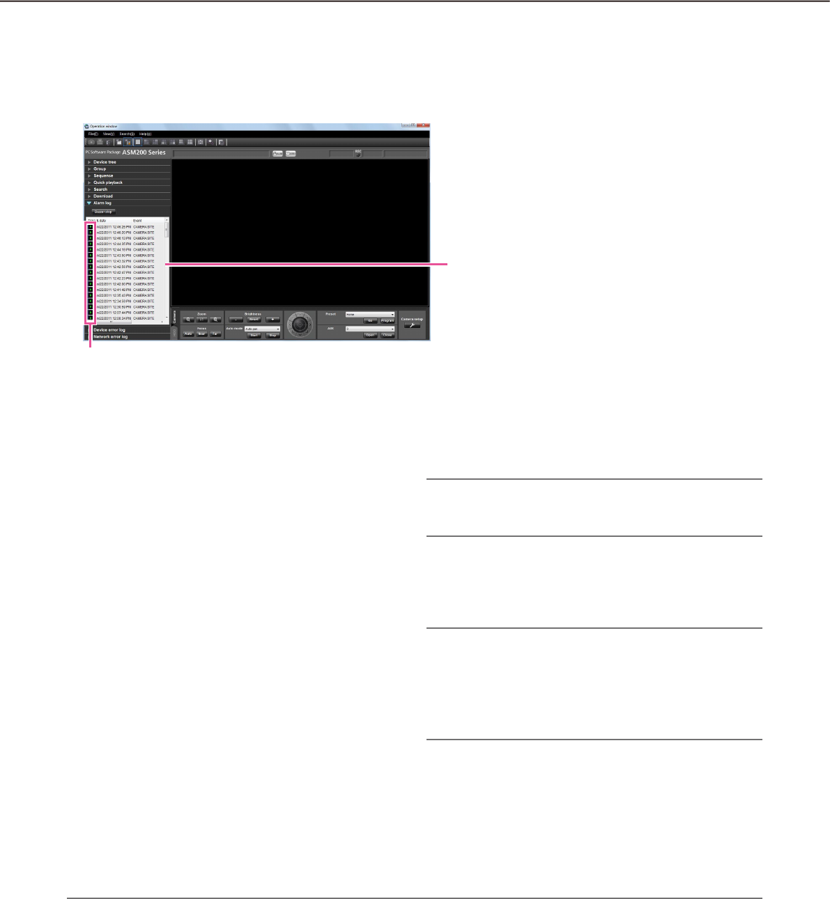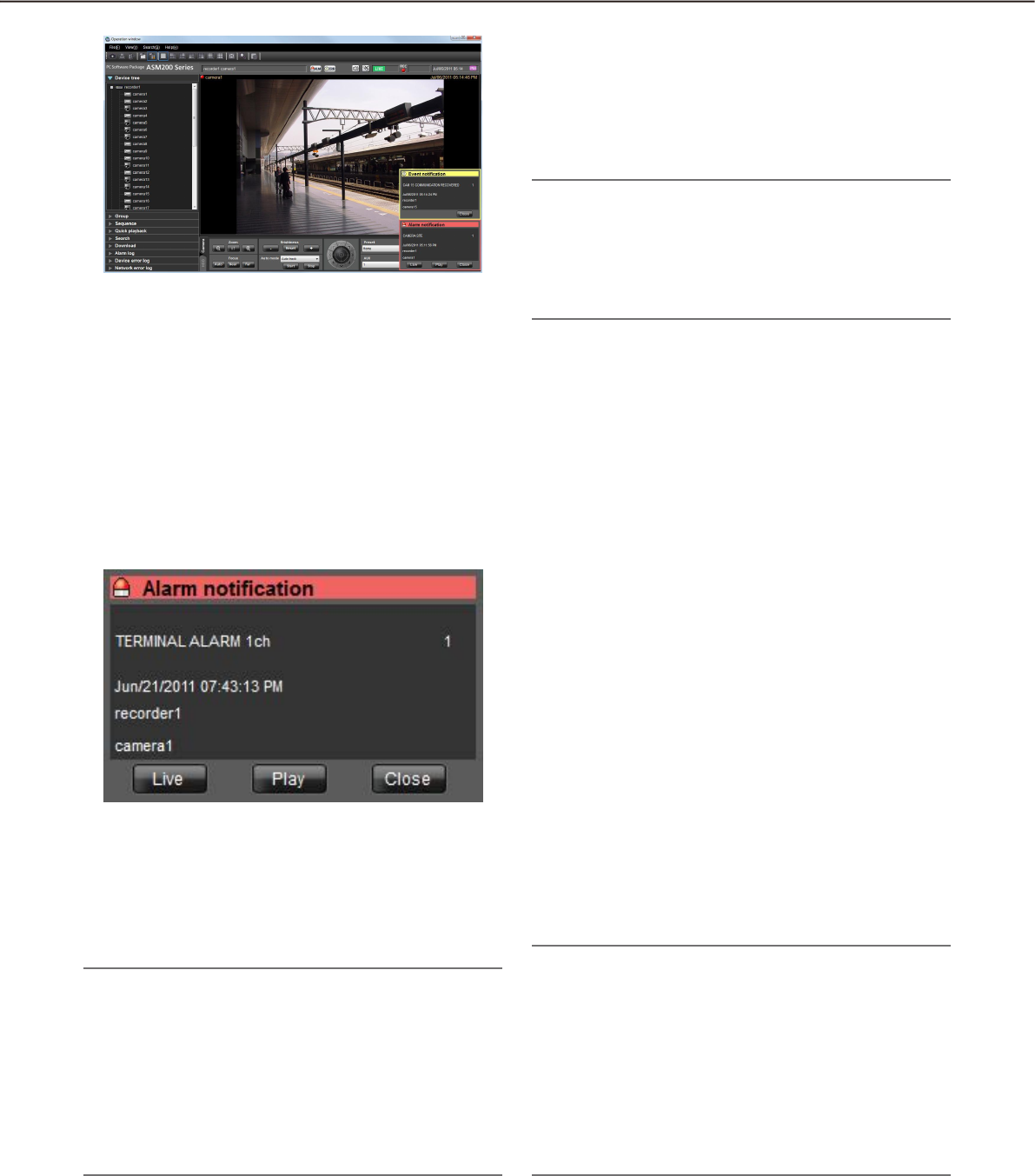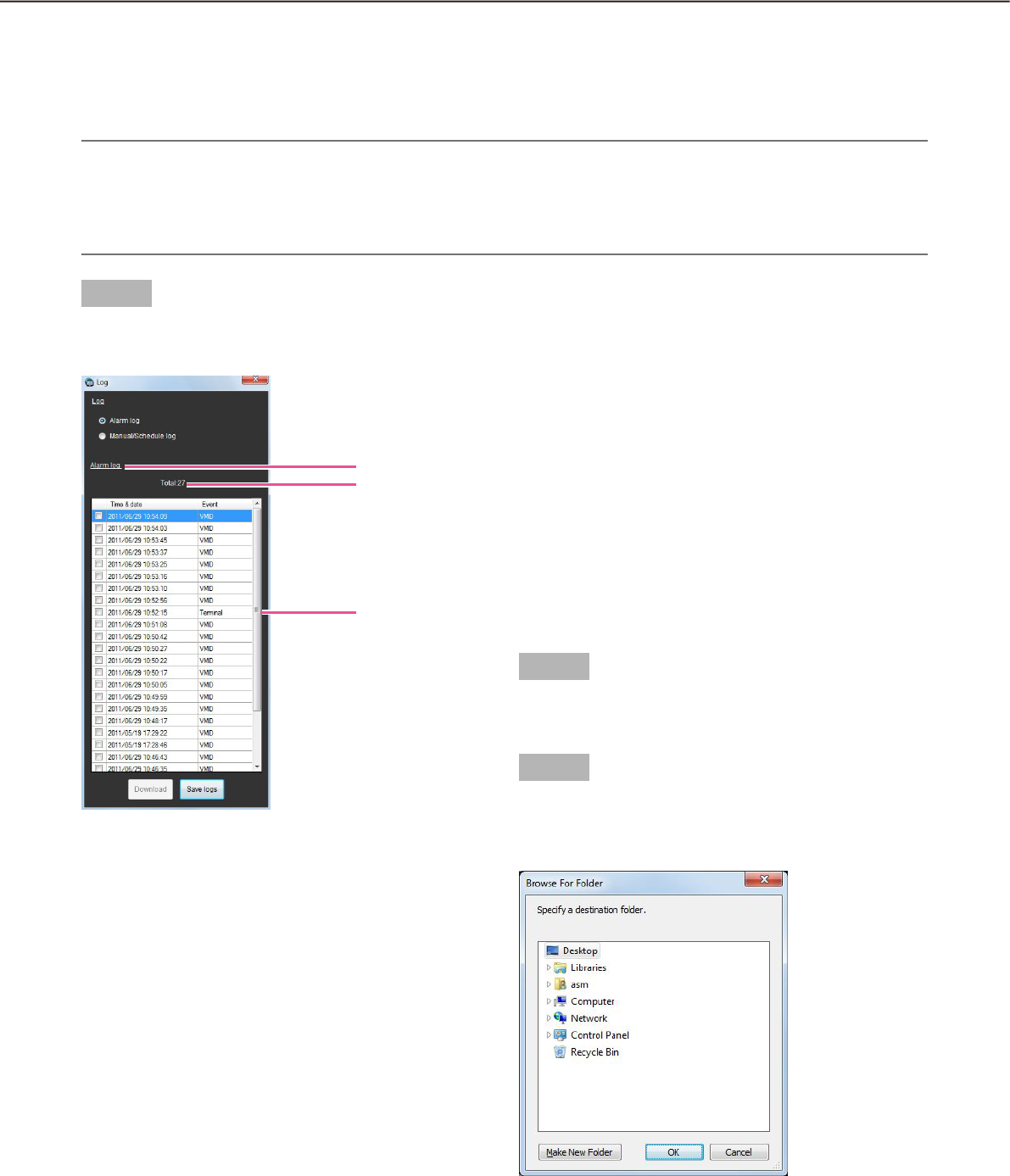 - Alarm/event notification and management of logs