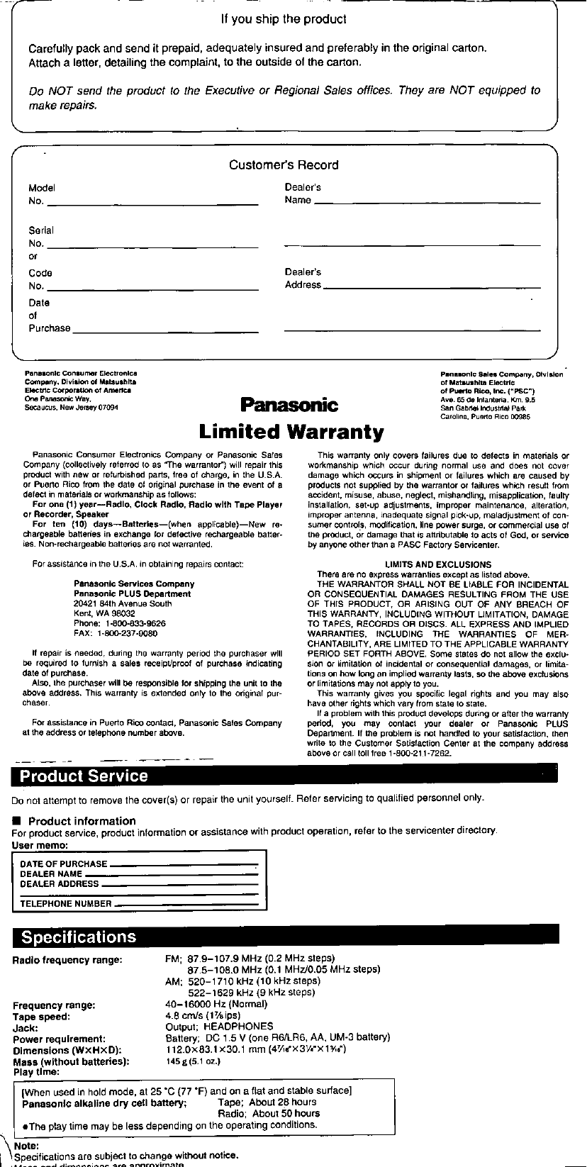 User Manual: Panasonic RQ-E25V to the manual