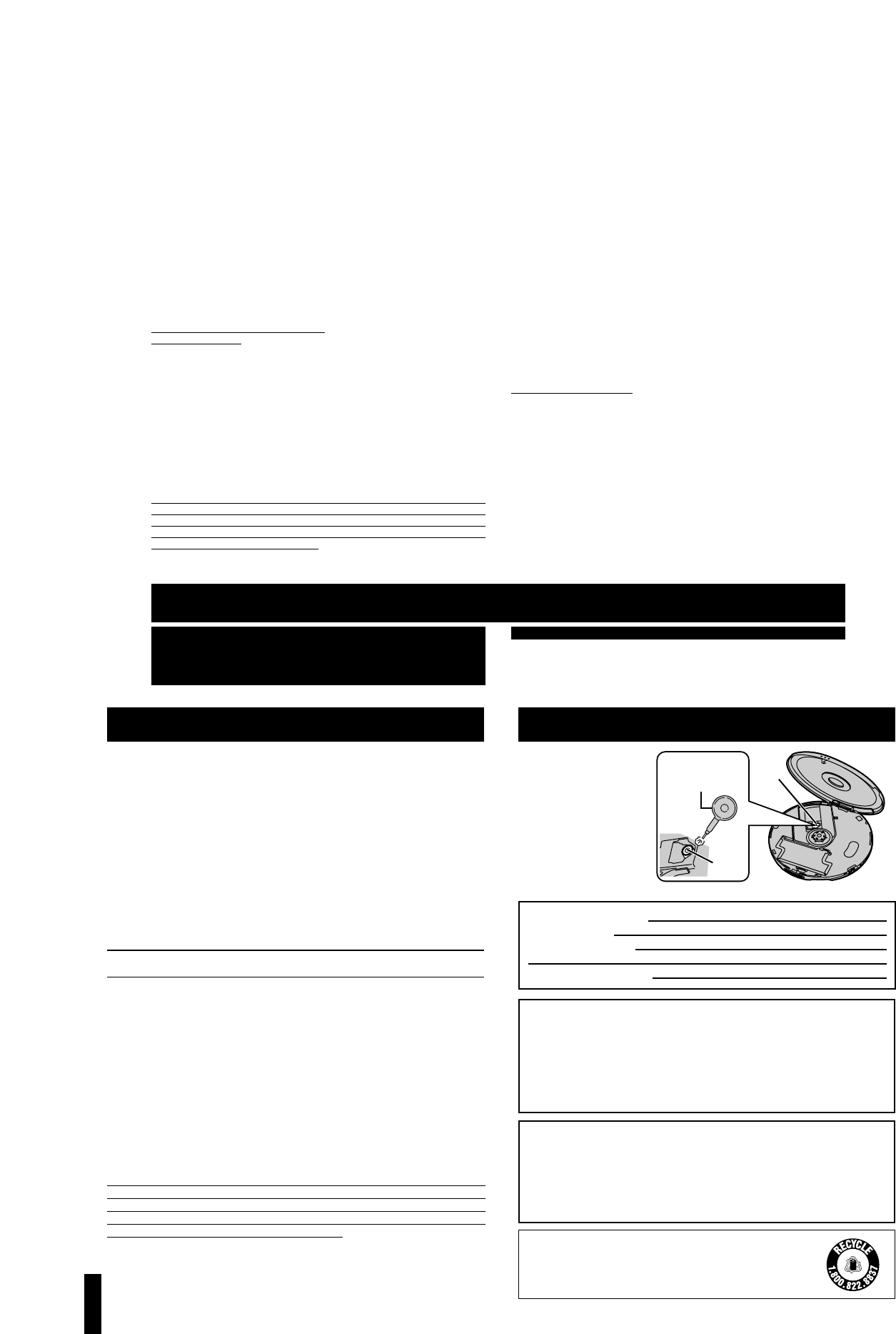 5505, web site (www.panasonic.ca), or an authorized Servicentre close to you.