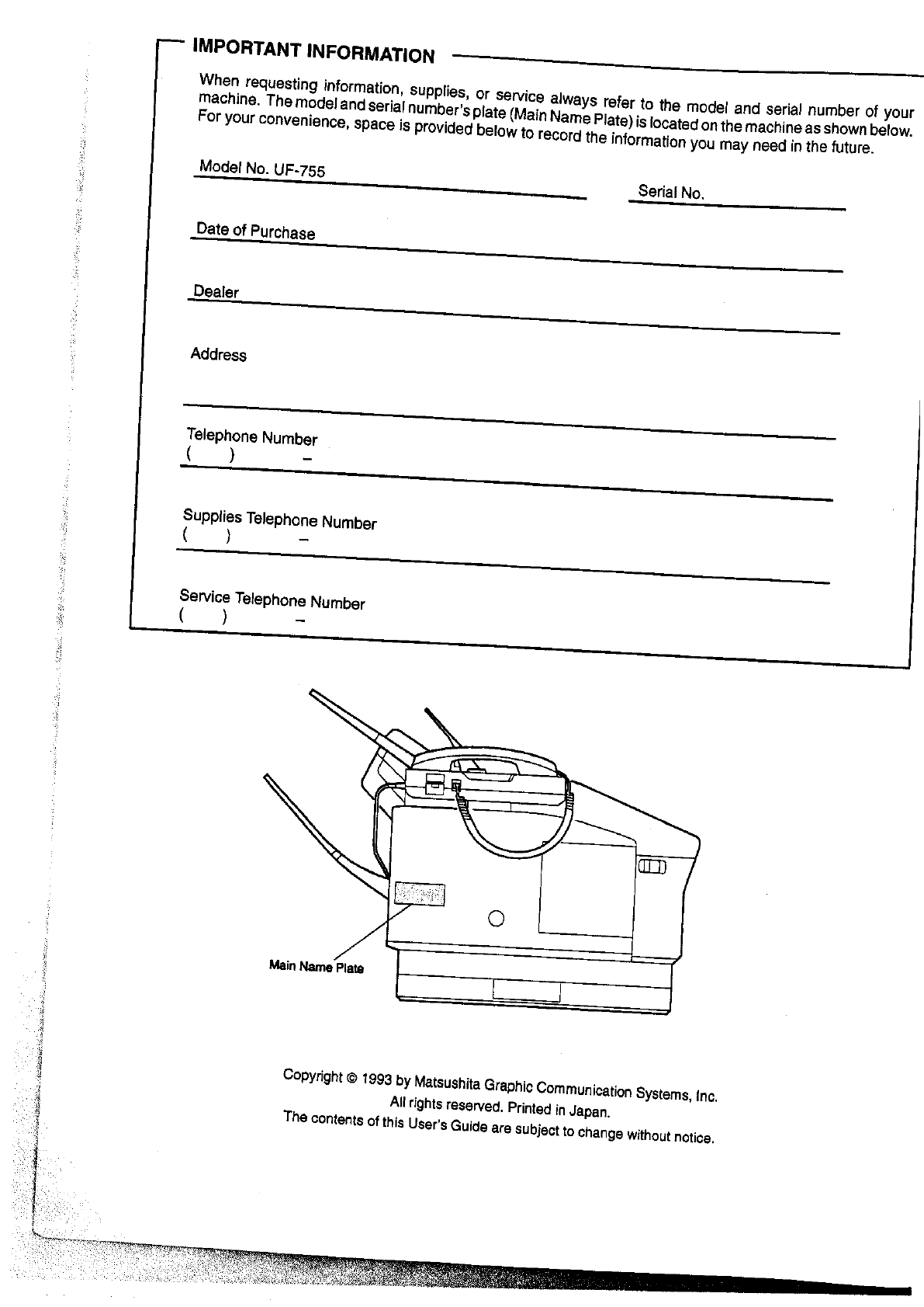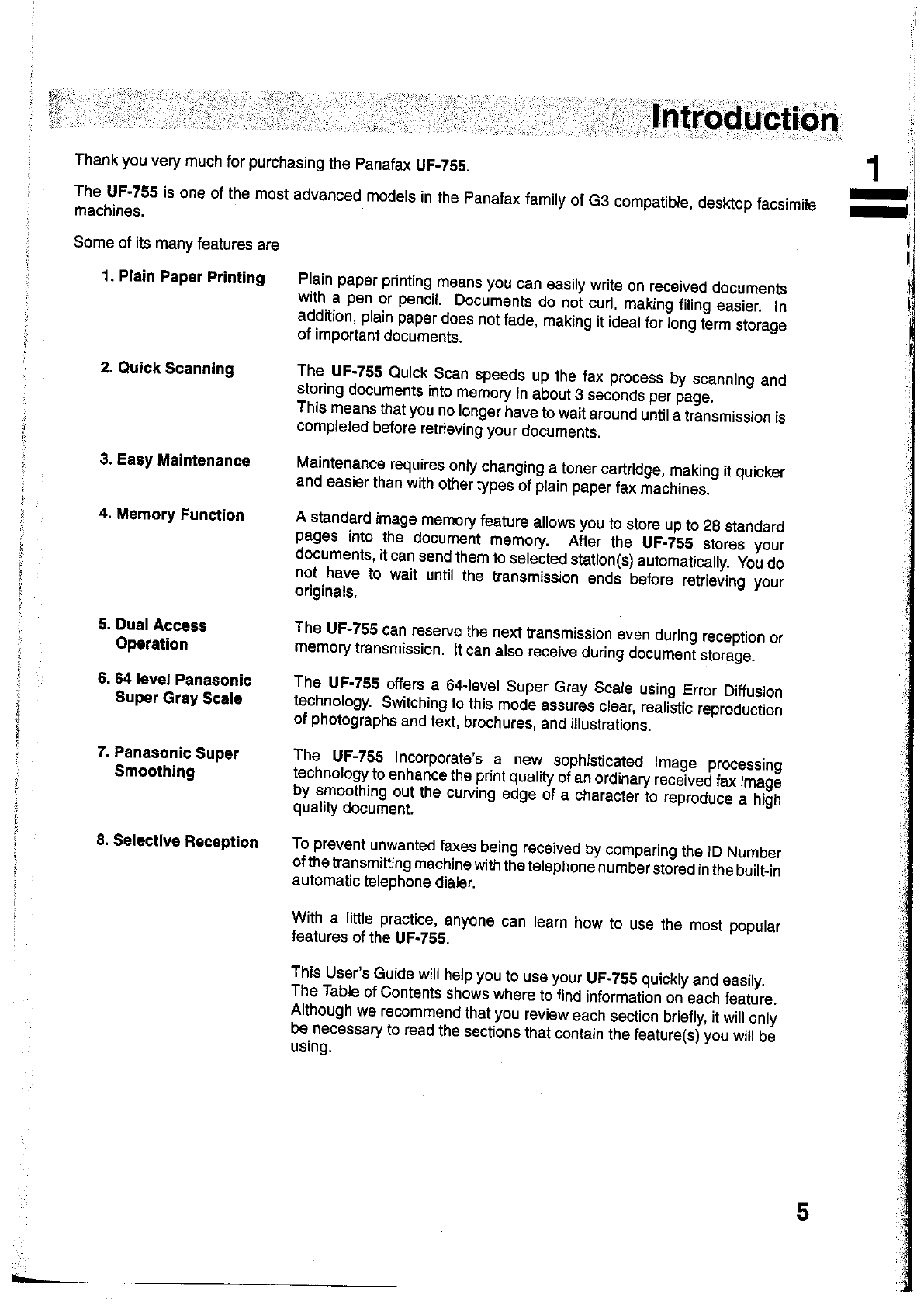 User Manual: Panasonic UF-755 to the manual
