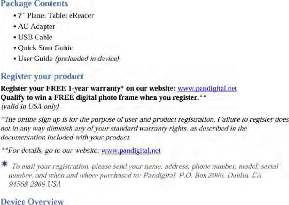Pandigital Planet Instruction Manual Tablet EReader USER GUIDE (R70A200)