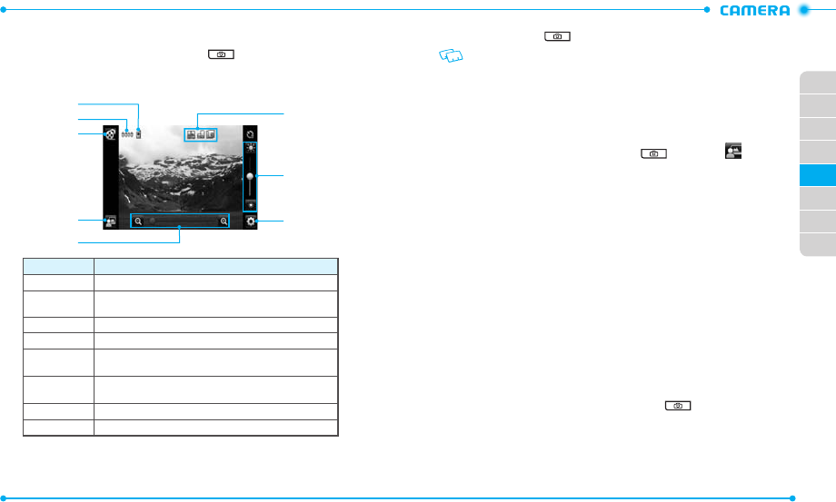 While using the camera or camcorder, tap to access the following settings: