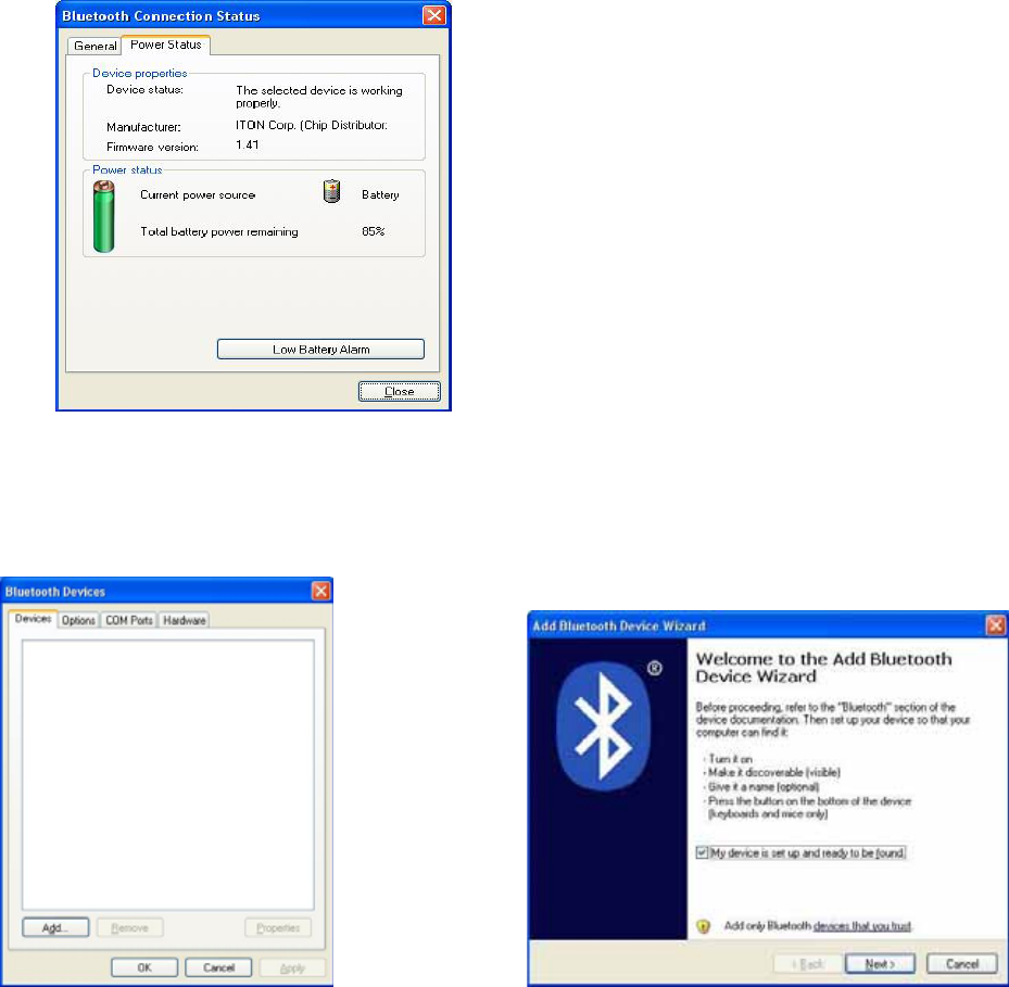 of the keyboard and select “Status”, then you can check the power status of the batteries and setup