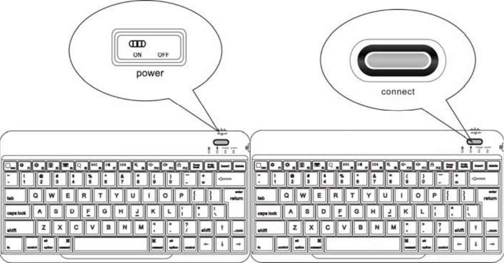 (2), according to a keyboard to Connect (Bluetooth) yards keys, flashing, Power