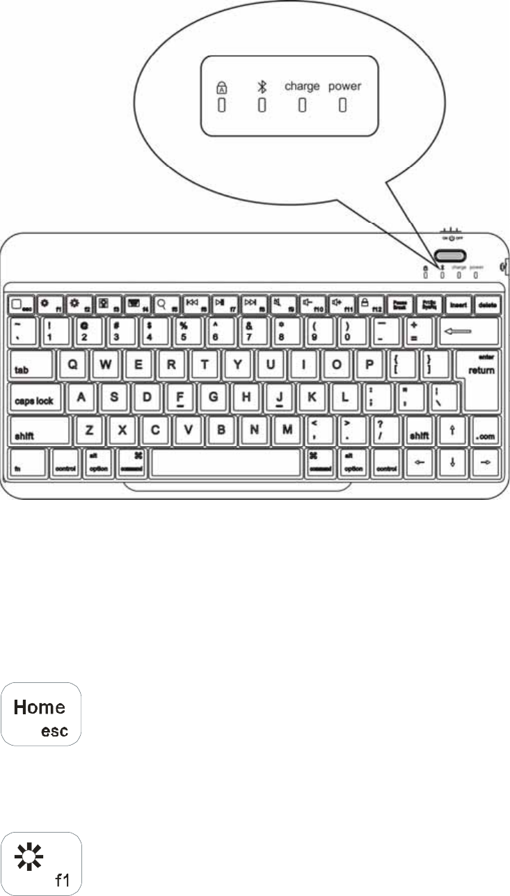 Press this button can control IPAD screen brightness increases, hold "FN" this