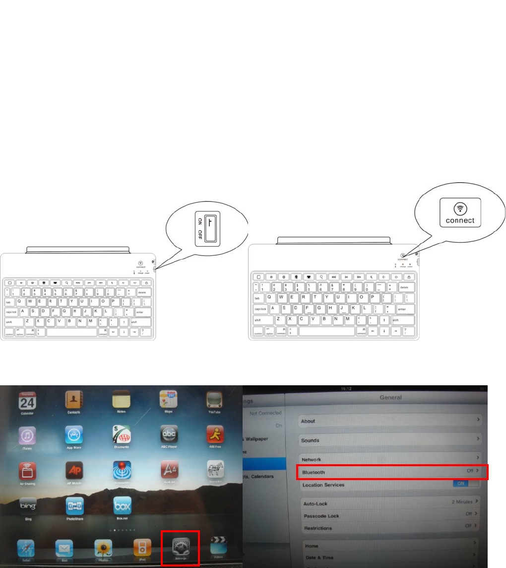 (2),Press and release the connect button on the bottom of Bluetooth Keyboard. The red led light will change into