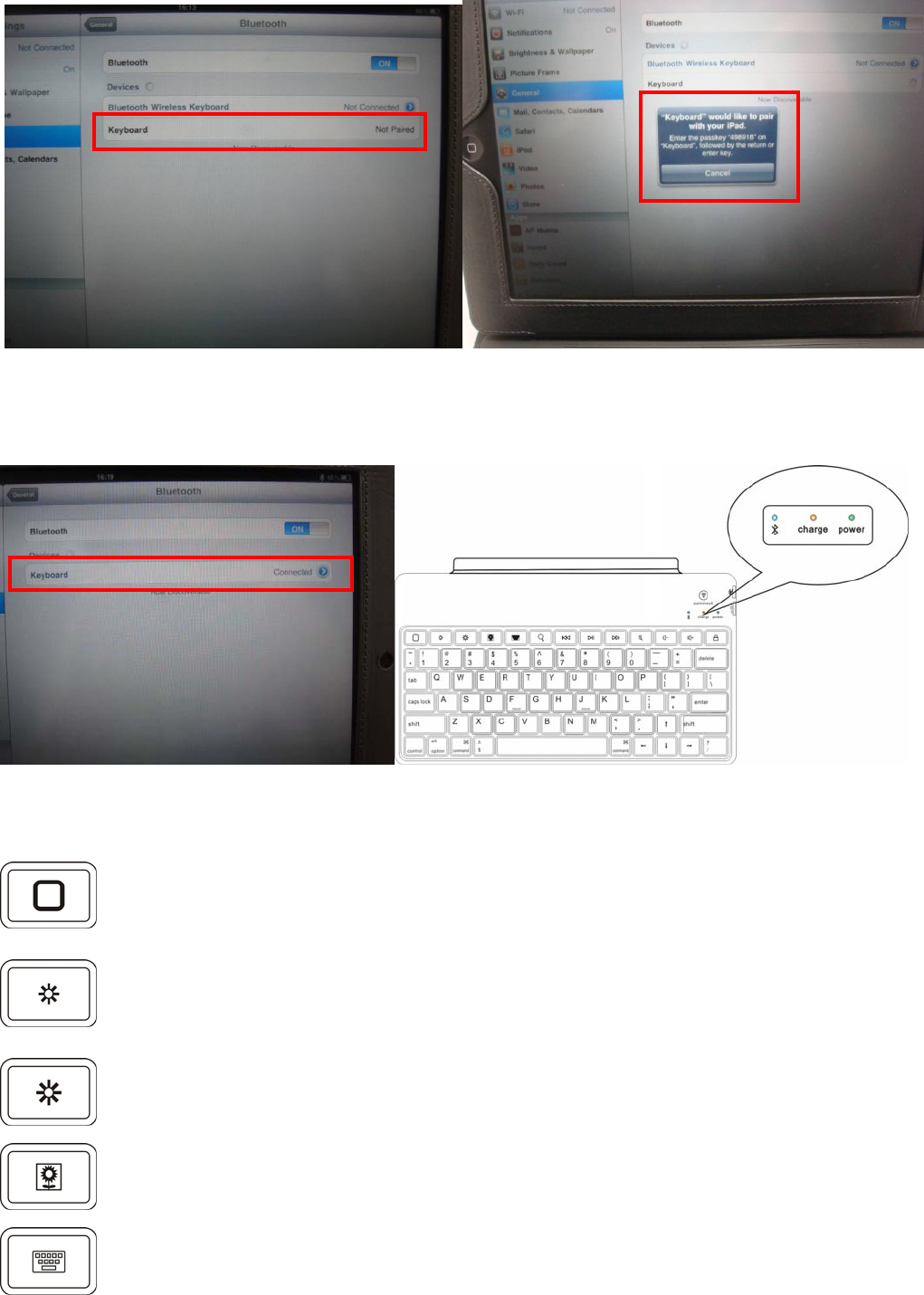 (2),Press the connect button ,the Bluetooth light will be flashing , Power light will be lighting ,so the keyboard is