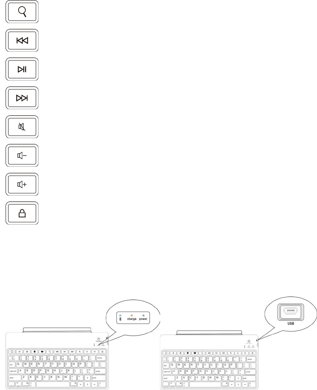Note: When you switch on the keyboard, the power light and Bluetooth light will be on in three seconds , at this