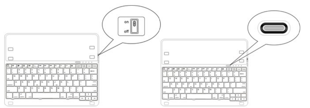 (1)、As shown in figure, will turn to switch on keyboard power in three seconds, Bluetooth indicator