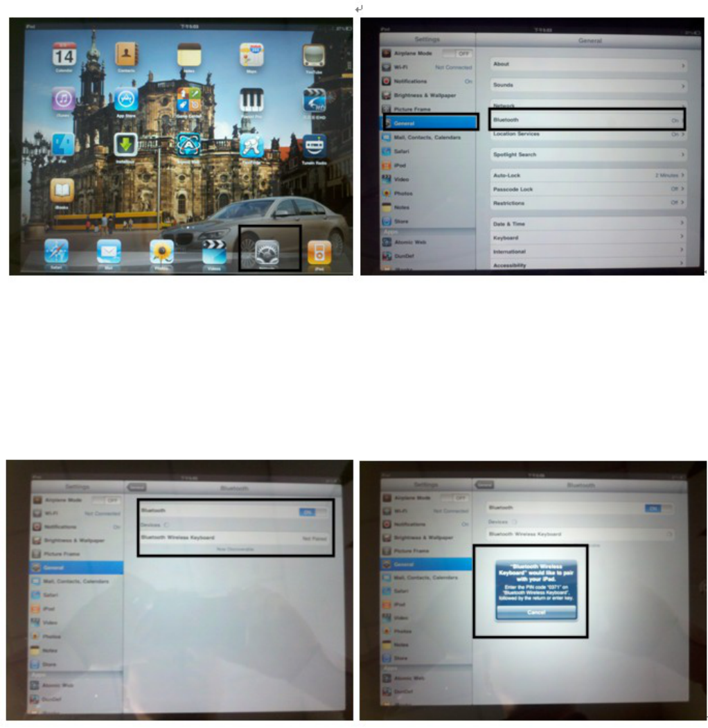 (shown below), search to Bluetooth keyboard, iPad will show you on the keyboard input password