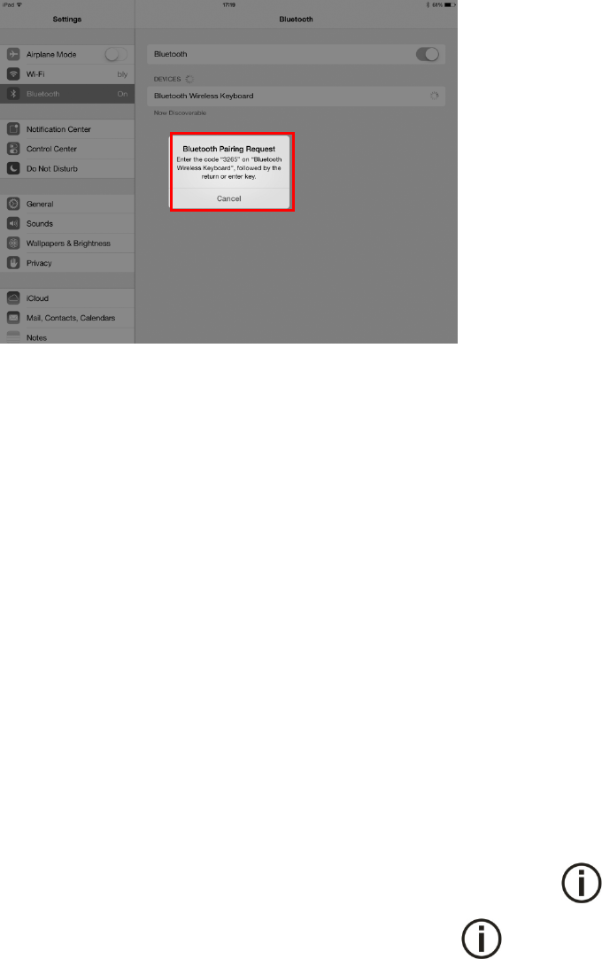 您在键盘上输入密码与 IPAD 或Iphone 进行连接。After the IPAD and IPHNE find out the bluetooth device and connect the
