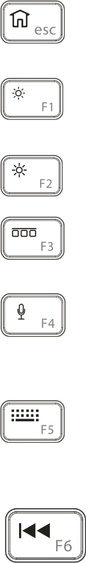 screen brightness decrease, hold the key "FN" when press this button again to realize "F1" function in the computer.