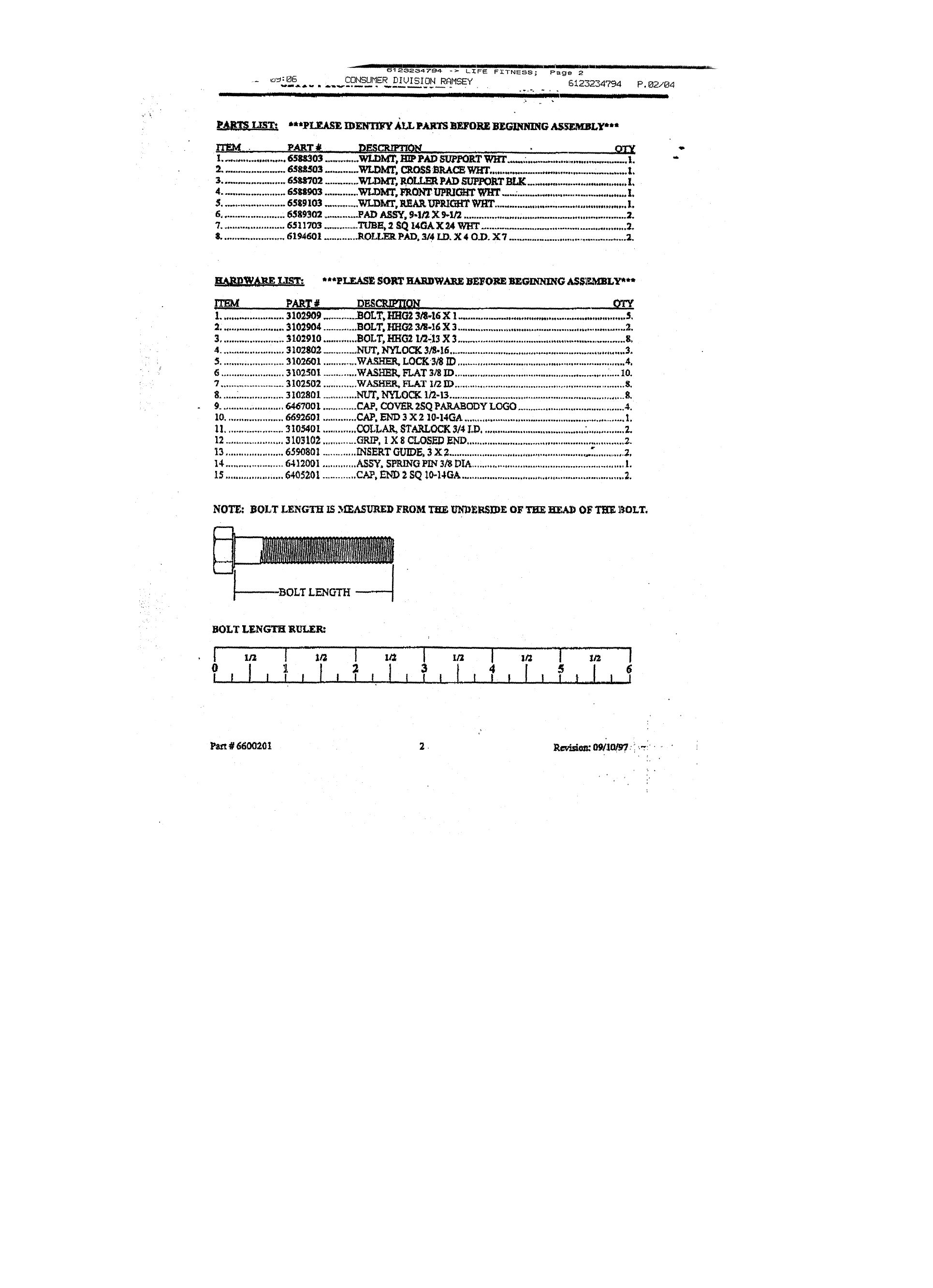 the PARABODY Customer S~rvi~v Department at 1-800-328-9714.