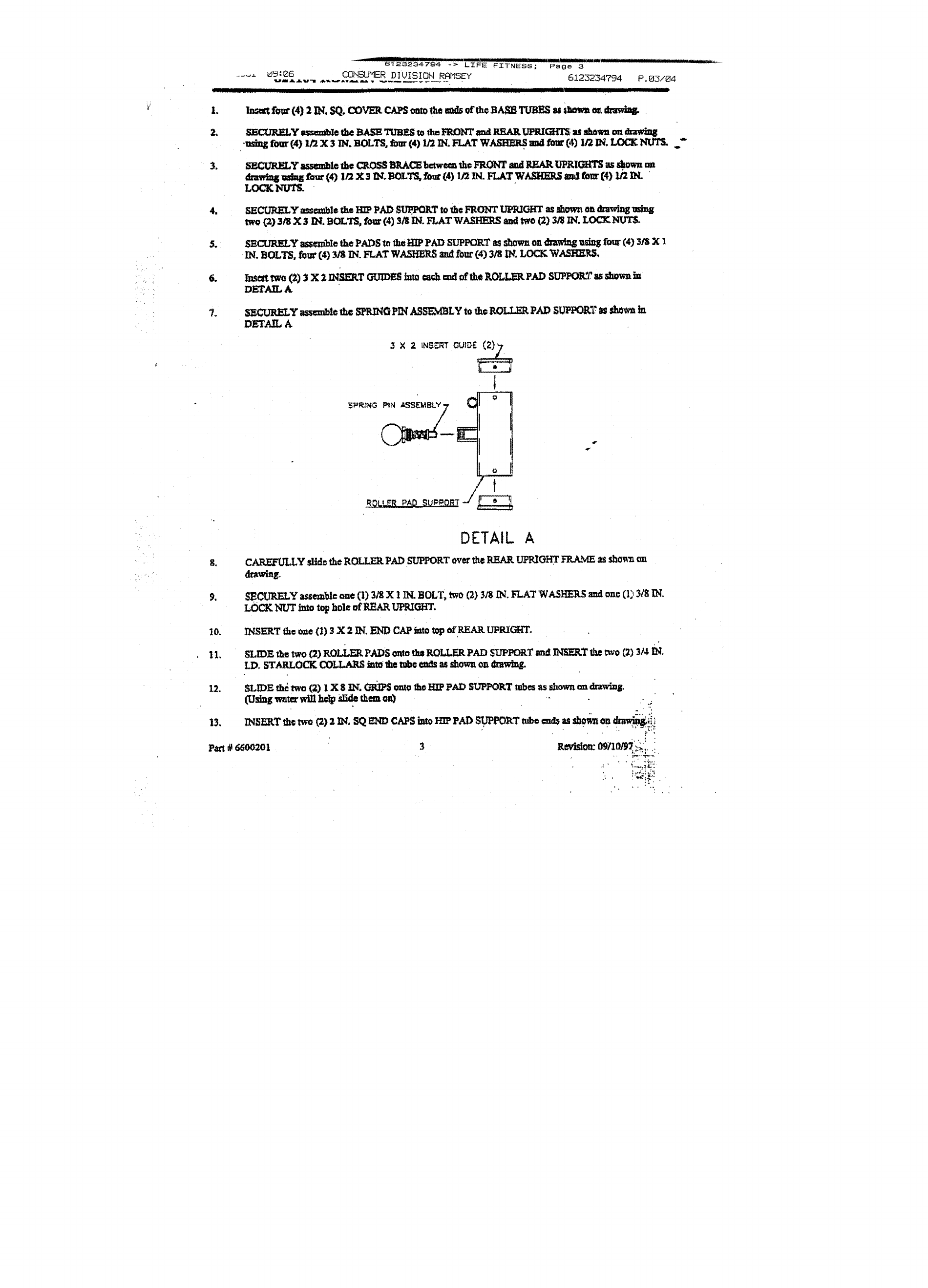 11. SLIDE th~ i~,i, (~) RO~ PADS onto tlm ROLLER PAD SUPPORT and INSERT lhe ~’o [2) 3/4 IN.