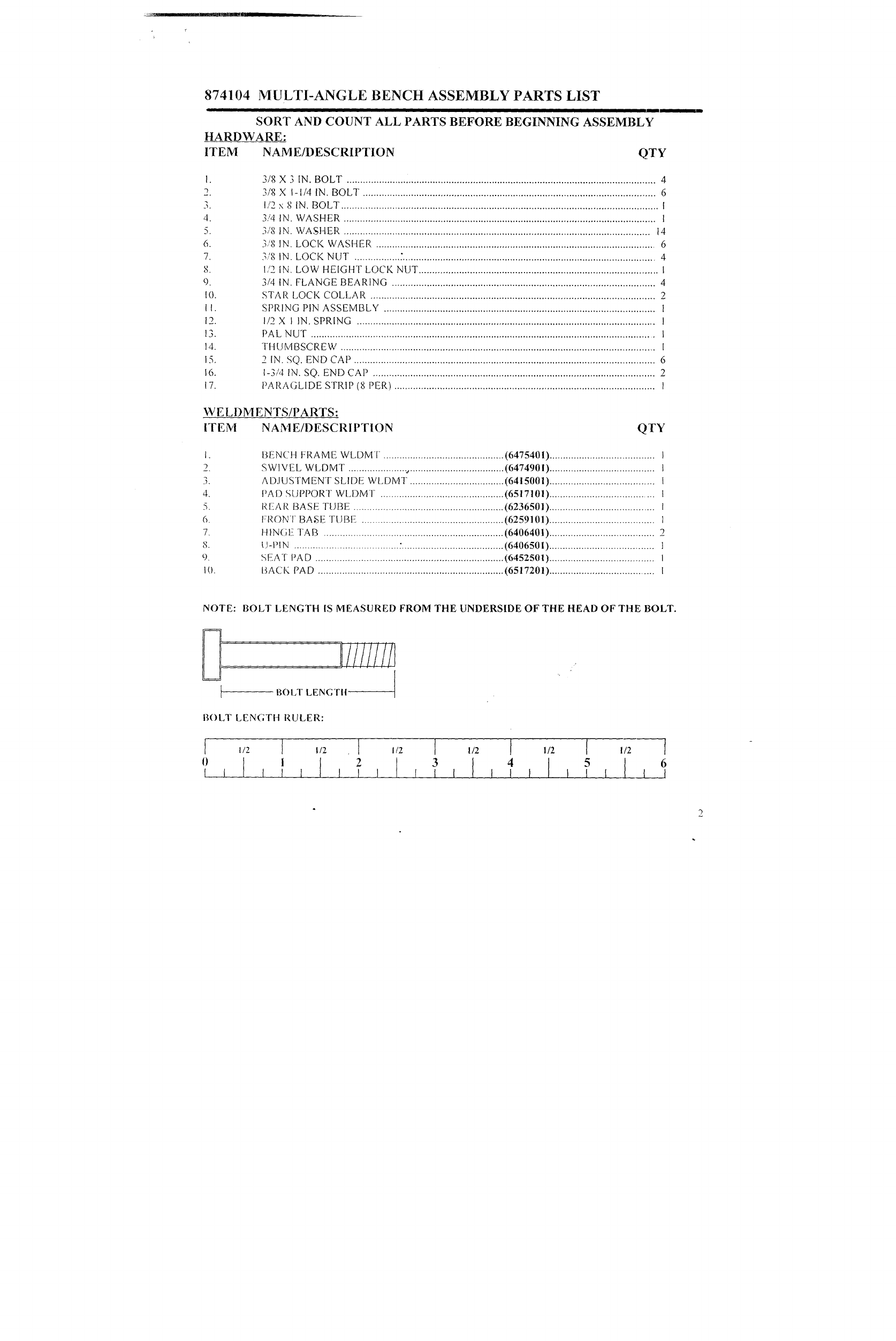 874104 MULTI-ANGLE BENCH ASSEMBLY PARTS LIST