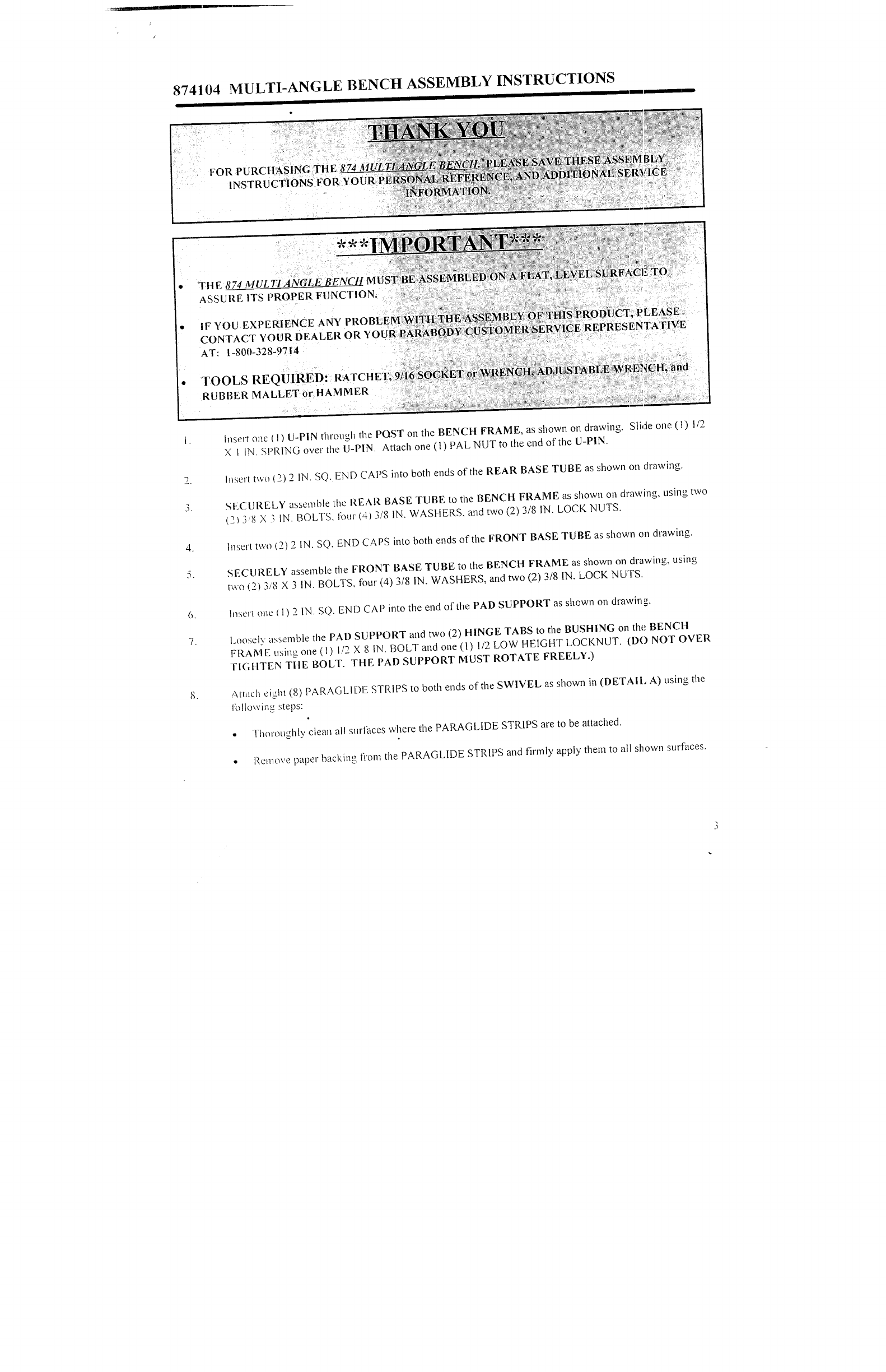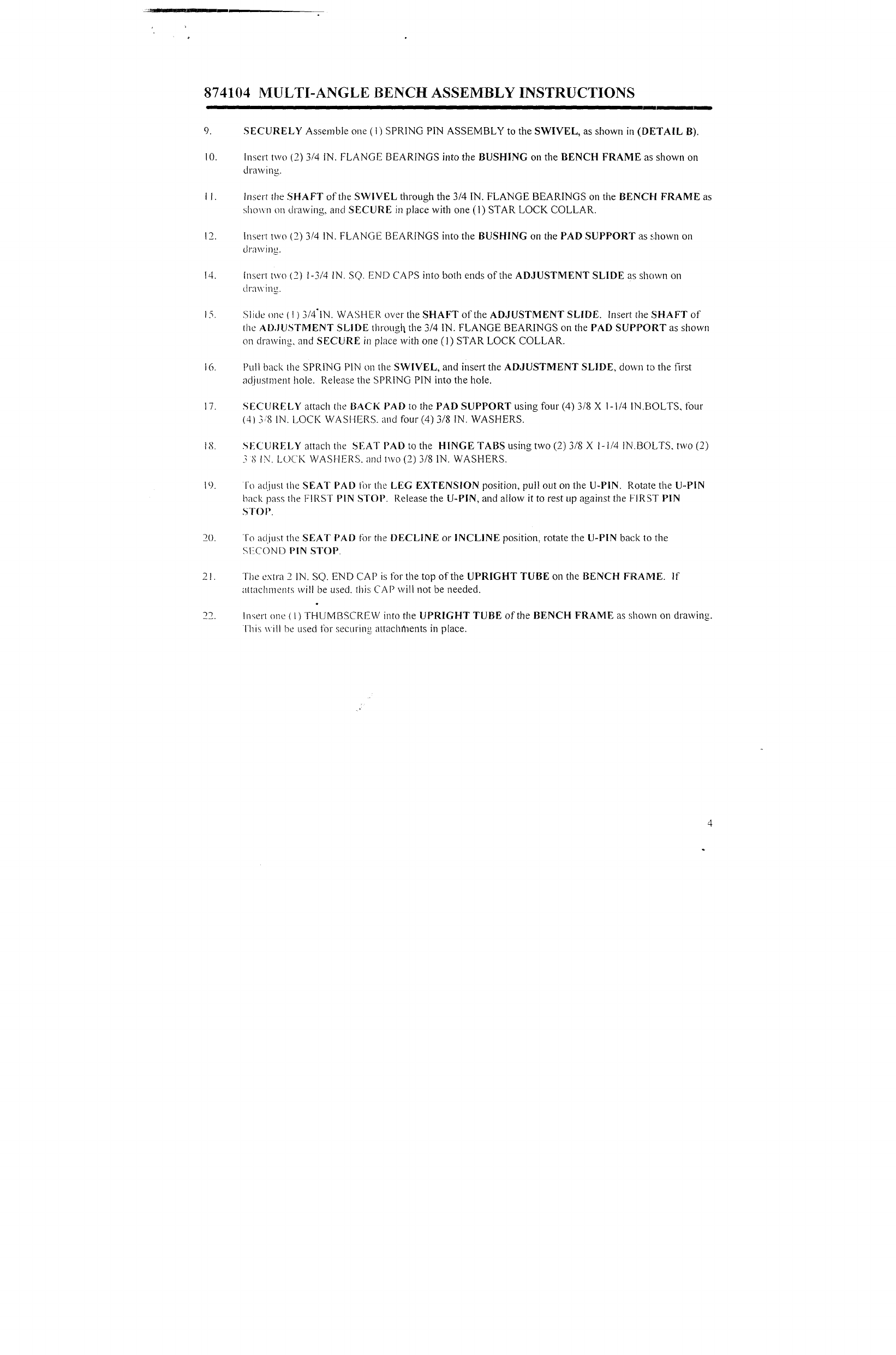 874104 MULTI-ANGLE BENCH ASSEMBLY INSTRUCTIONS