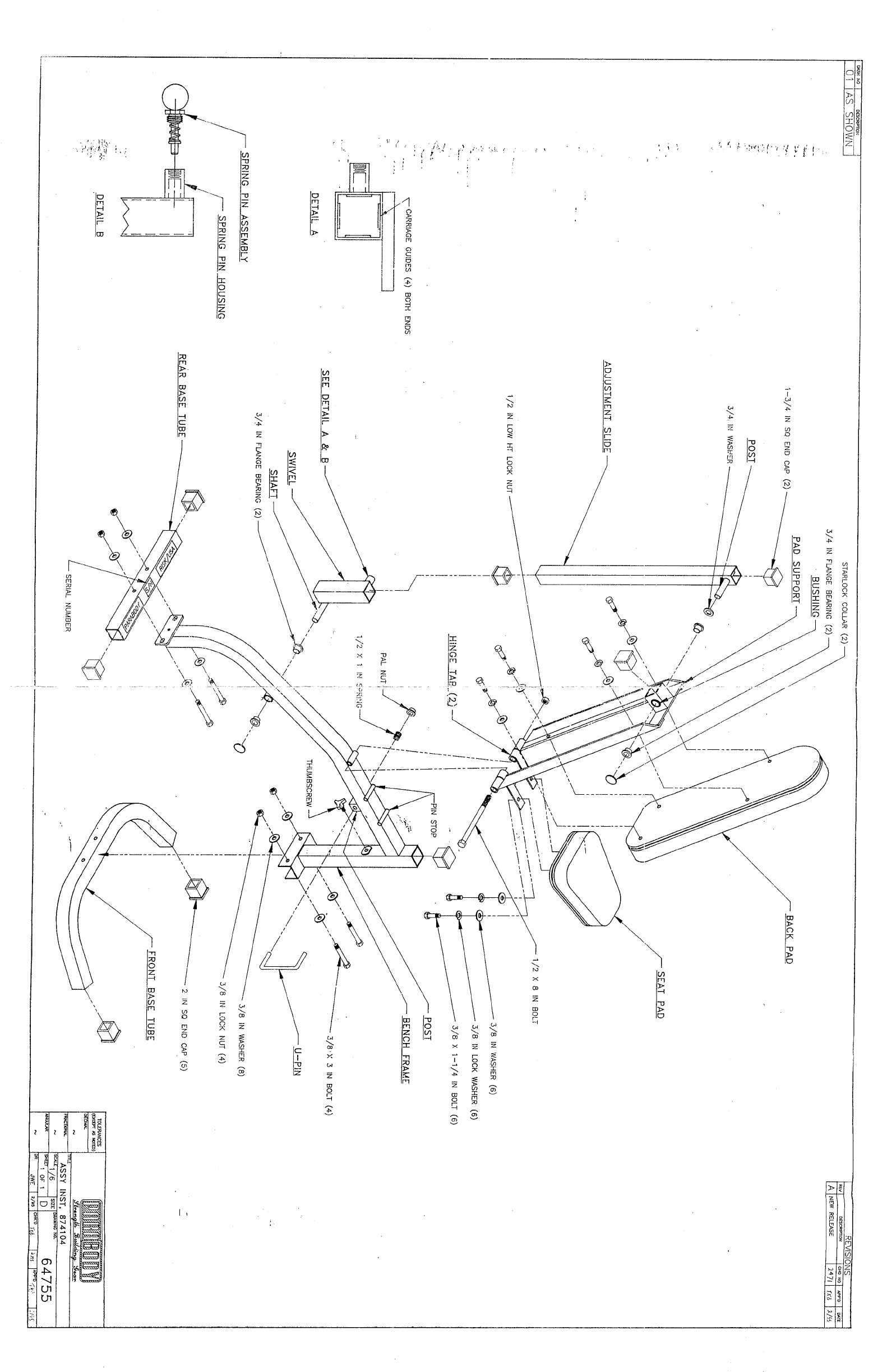 17. SECURELY attach the BACK PAD to the PAD SUPPORT using foul" (4) 3/8 X 1-1/4 IN.BOLTS, tbur
