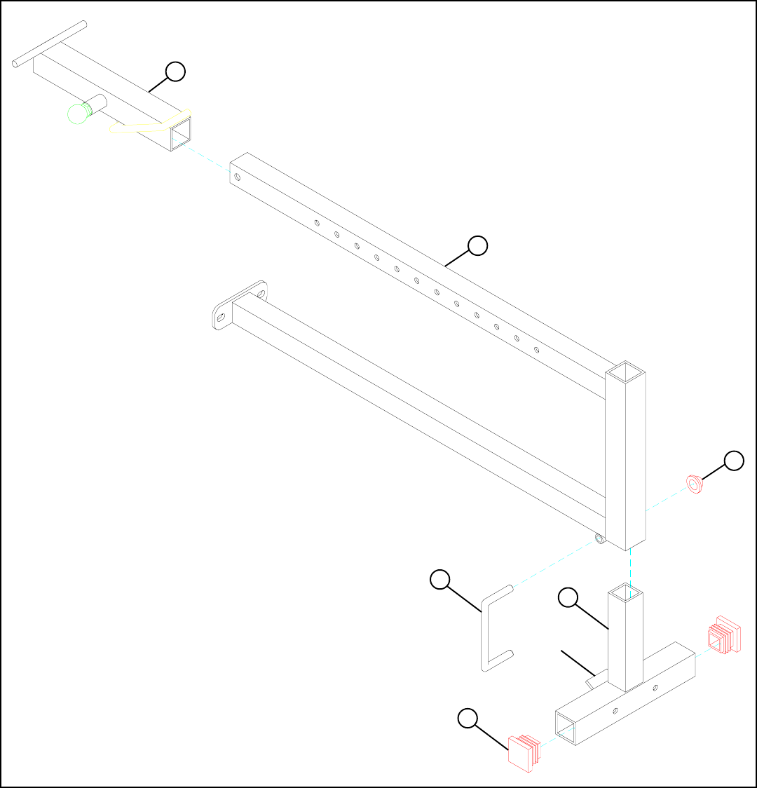 • Insert three 1-3/4” SQ. END CAPS (23) into the ends of the LEG EXTENSION (8) as shown in FIGURE 8.