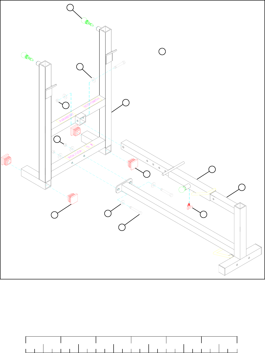 • Insert one U-PIN (10) through the BUSHING on the bottom of BENCH FRAME (2) and attach one PAL NUT (28) to the end of
