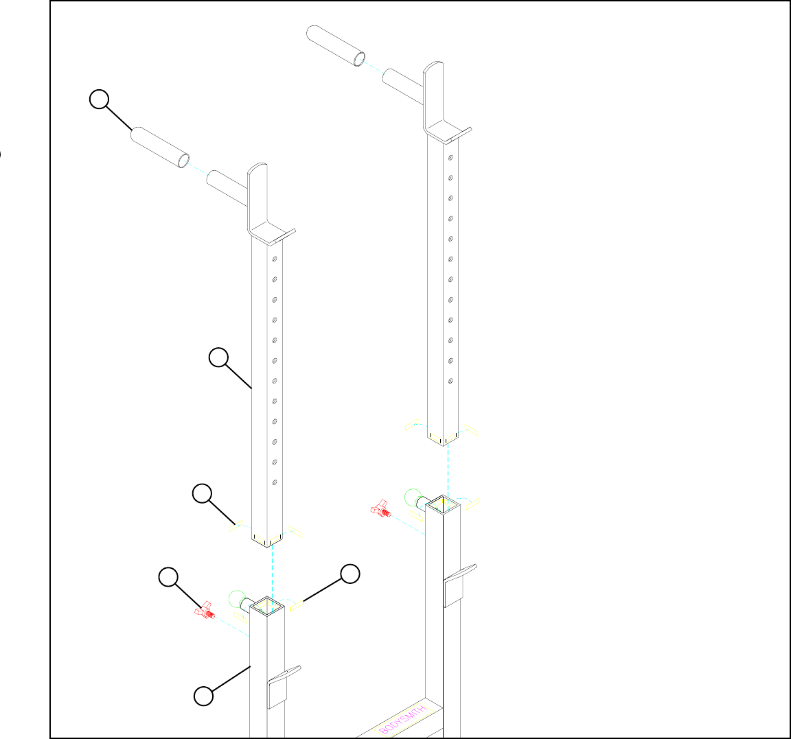 • SECURELY assemble two 3/8” SPRING PIN ASSEMBLIES (25) to the SPRING PIN HOUSING on the UPRIGHT FRAME (1)
