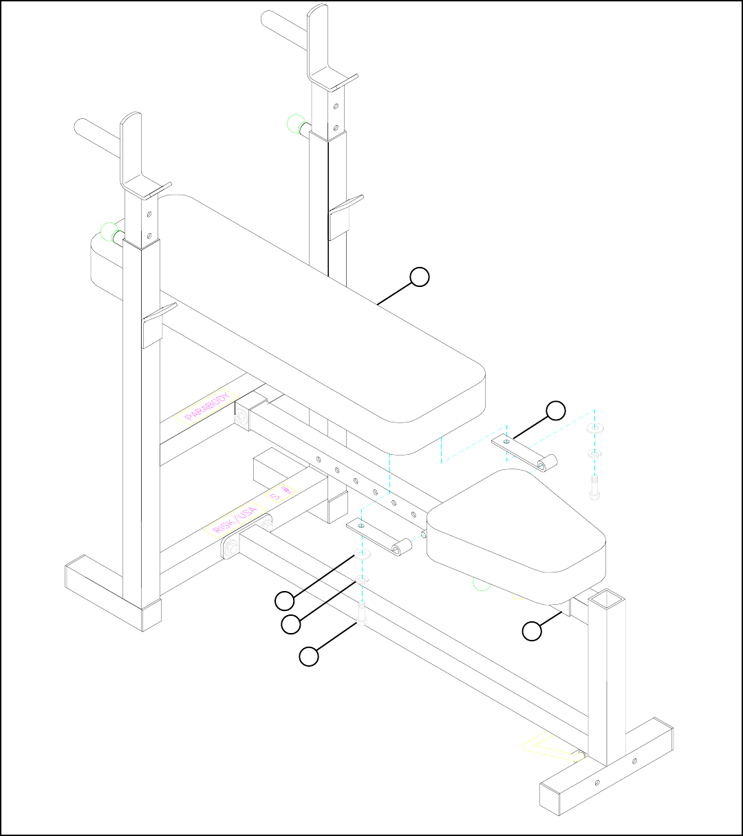 ON THE BASE LEG IS UNDER THE BENCH FRAME)